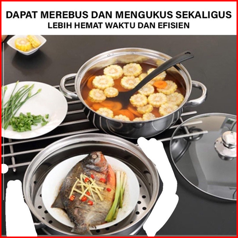 Panci 2in1 Kukus Tutup Kaca Stainless Steamer 28cm