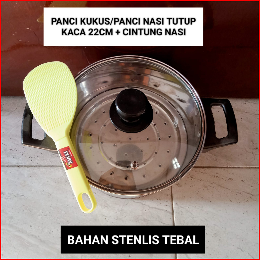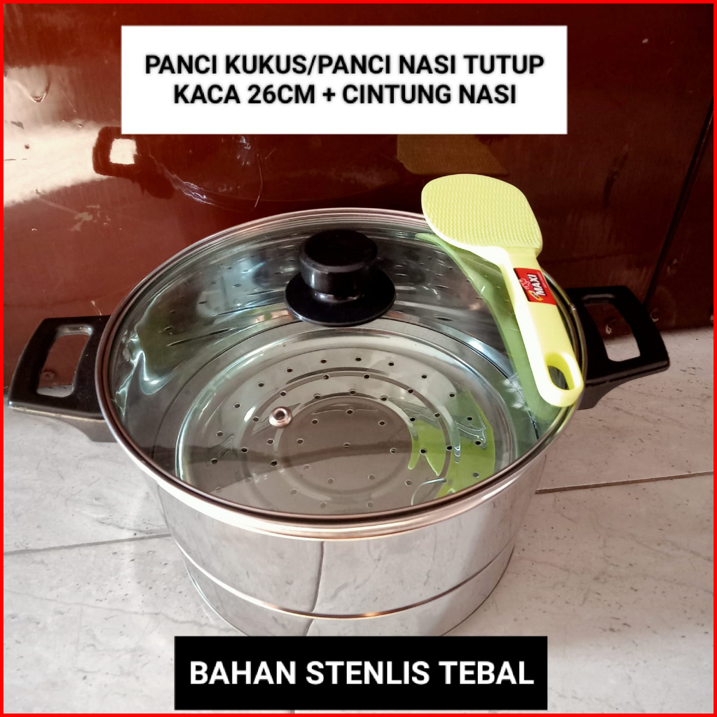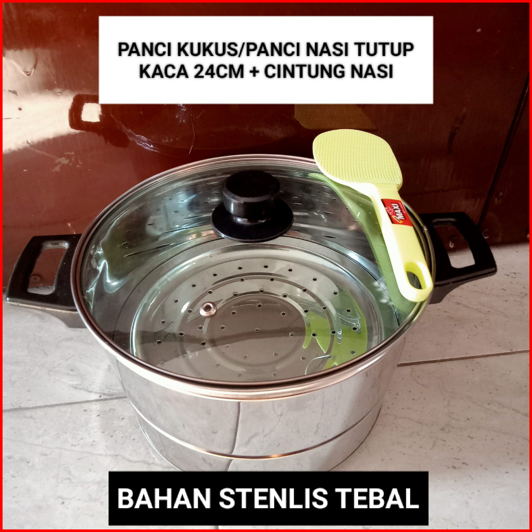Panci Kukus Bahan Stenlis Tutup Kaca Ukuran 18 20 22 24 26 28cm Free Cintung Nasi