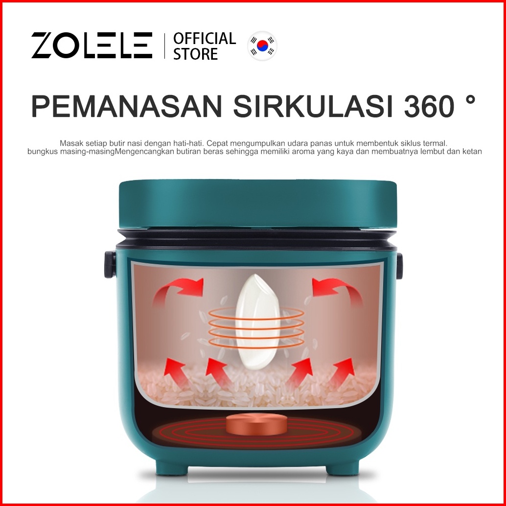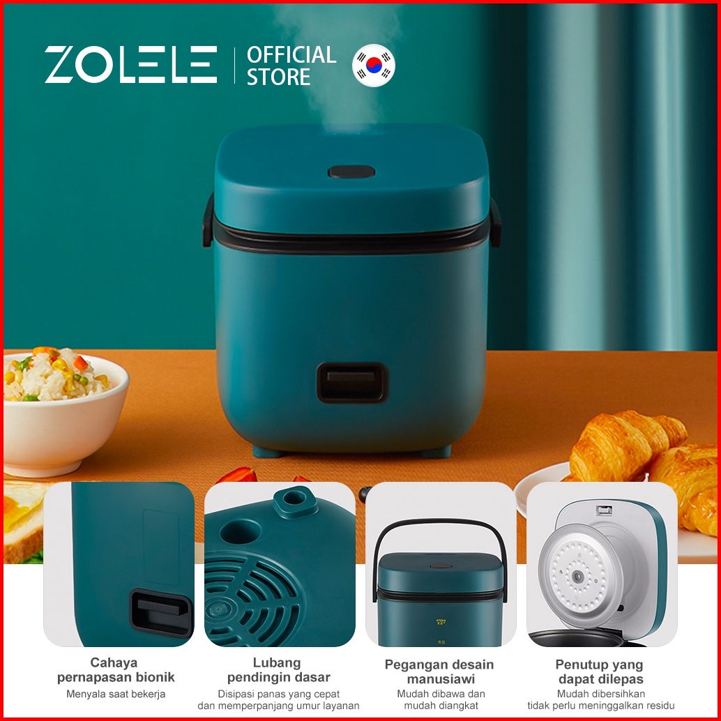 Zolele Rice Cooker Mini Penanak Nasi Kecil Anak Kos Mewah Magic Com 2-3 Porsi Multi Non Stick Pressure Cooker Portable N