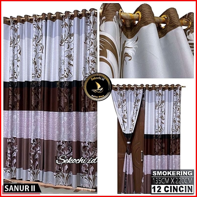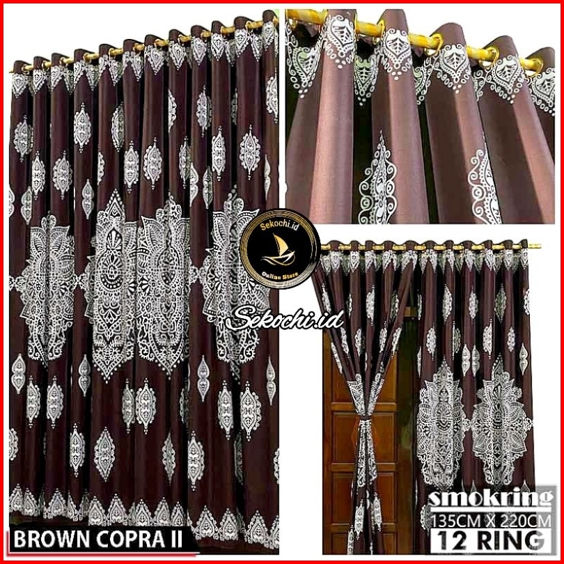 Promo Gorden Warna Coklat Estetik Smokring 12 Ring Untuk Pintu Dan Jendela Multifungsi