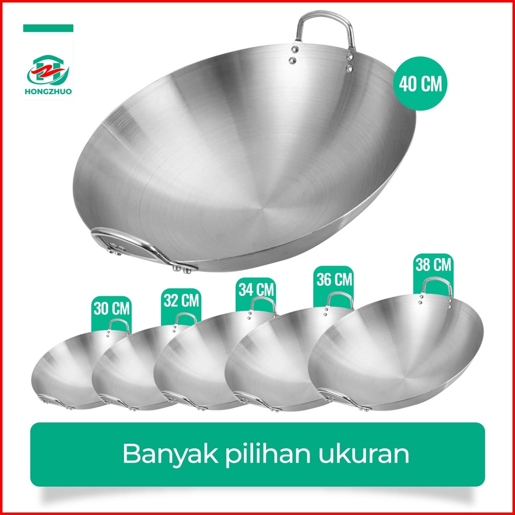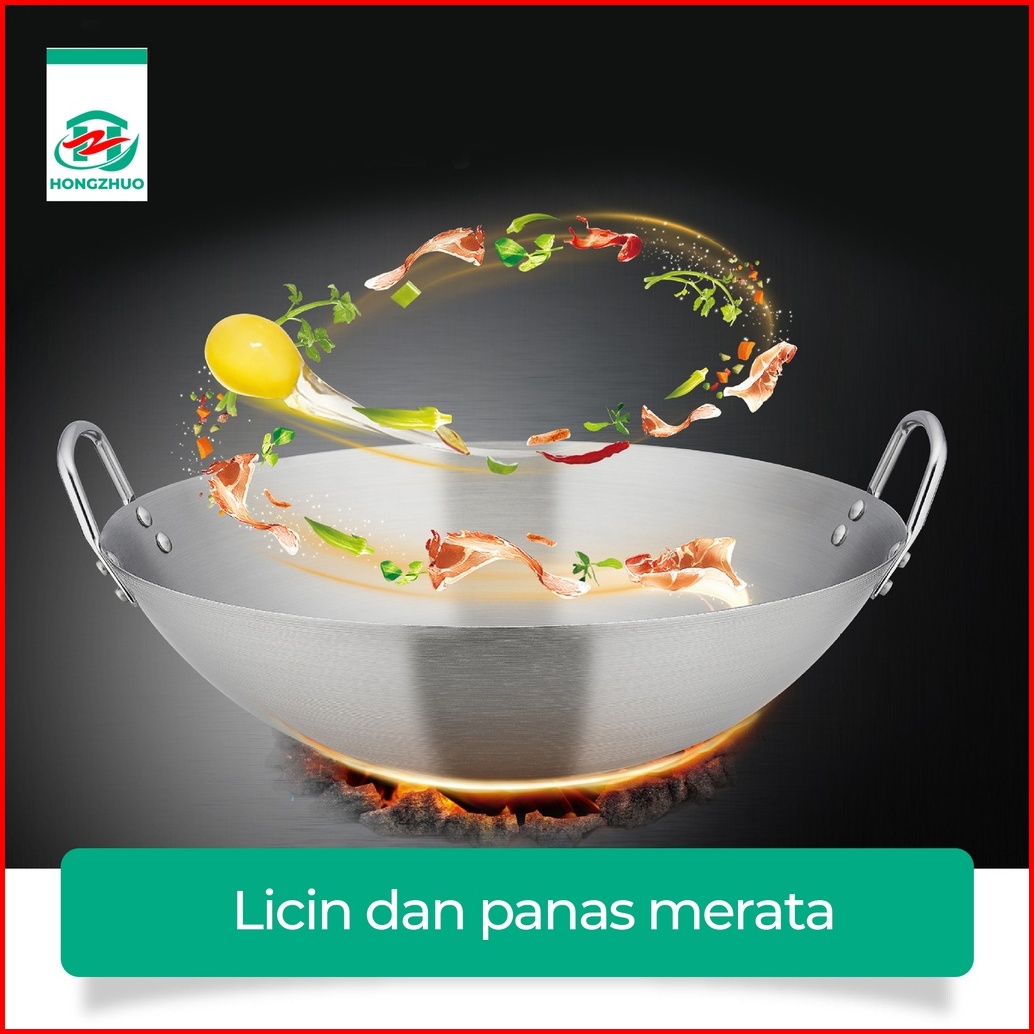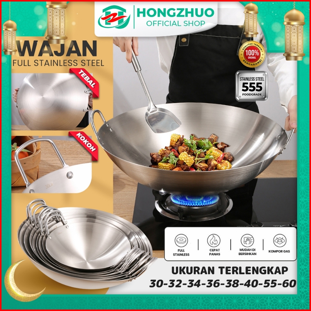 Hongzhuo Wajan Stainless 555 Tebal Kuali Premium Dengan Pegangan Stainless Steel Kuali Besar Katel Anti Lengket