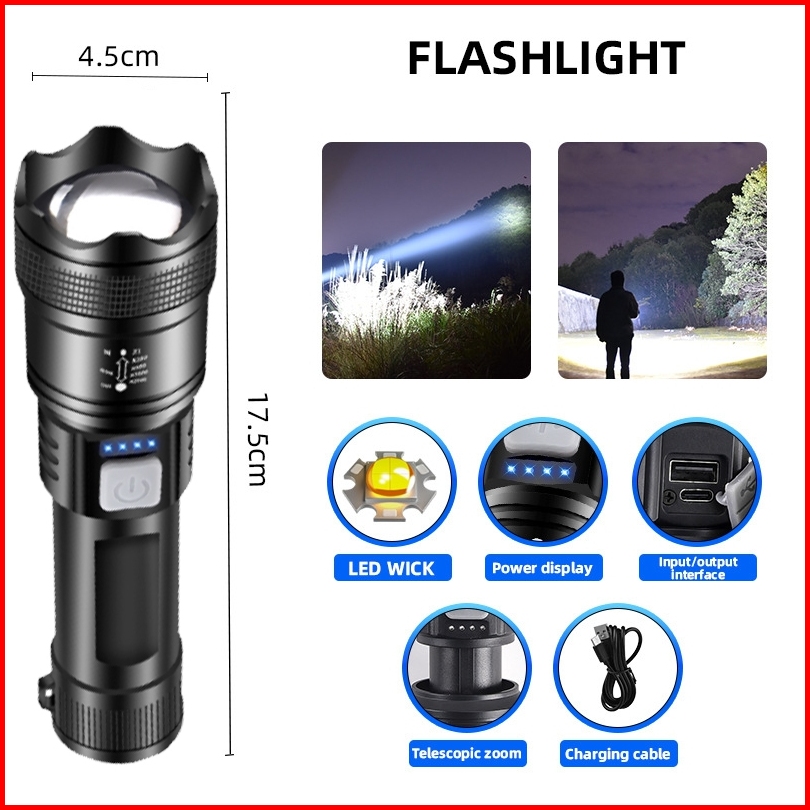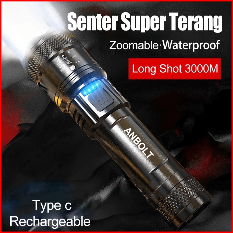 Ready Stockanbolt Senter Led Super Terang 10000 Lumens Jarak Jauh Ringan Tahan Air Ipx4 Zoom Usb Rechargeable Senter Tah