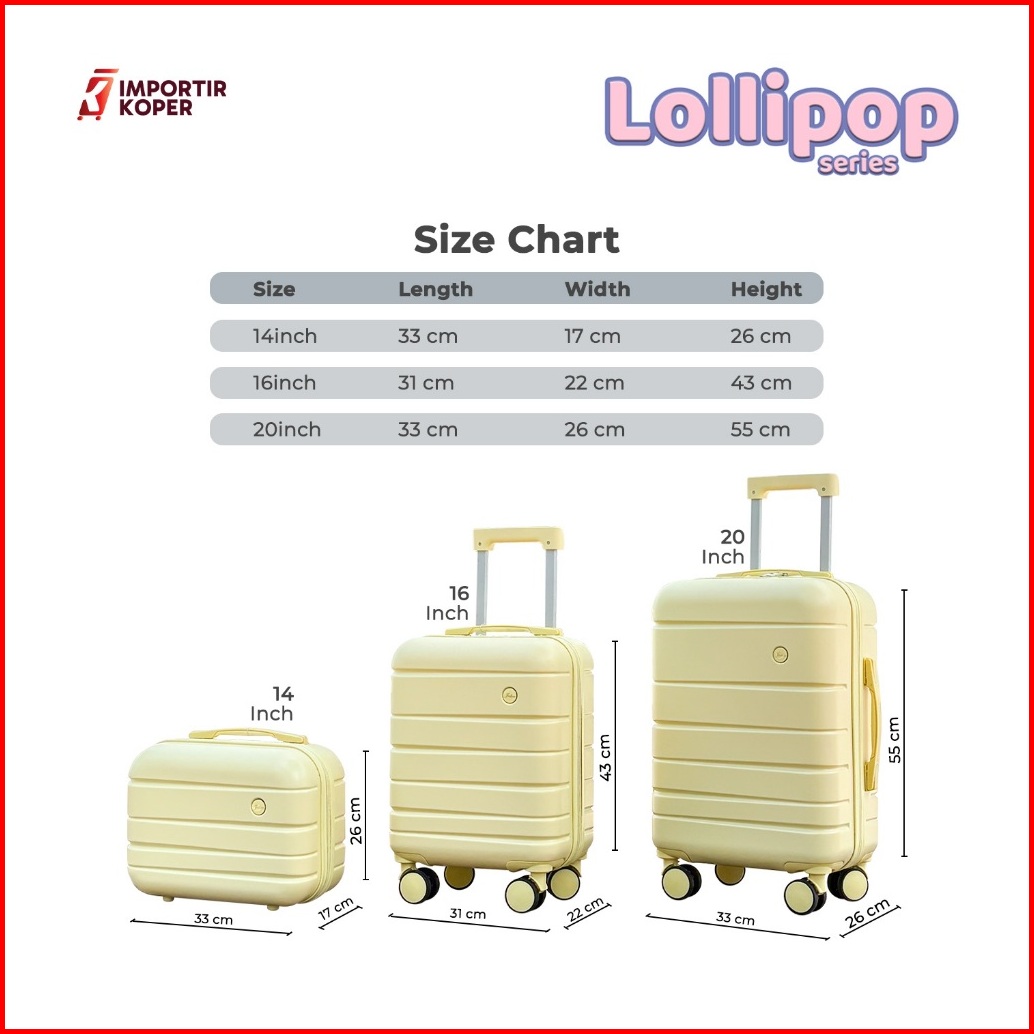 Importir Koper Joshee Original Lollipop Series Size Kabin 14 16 20 Inch Ringan Tahan Banting