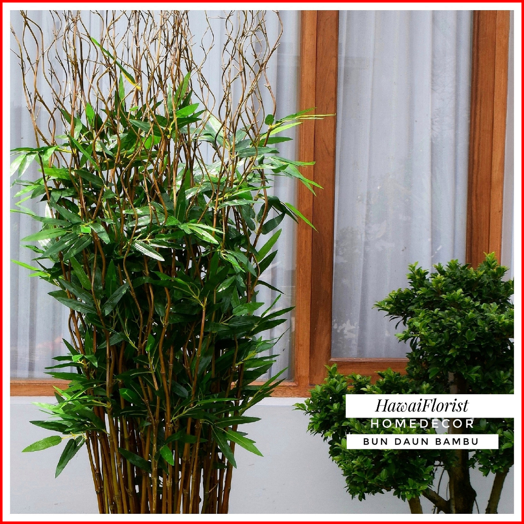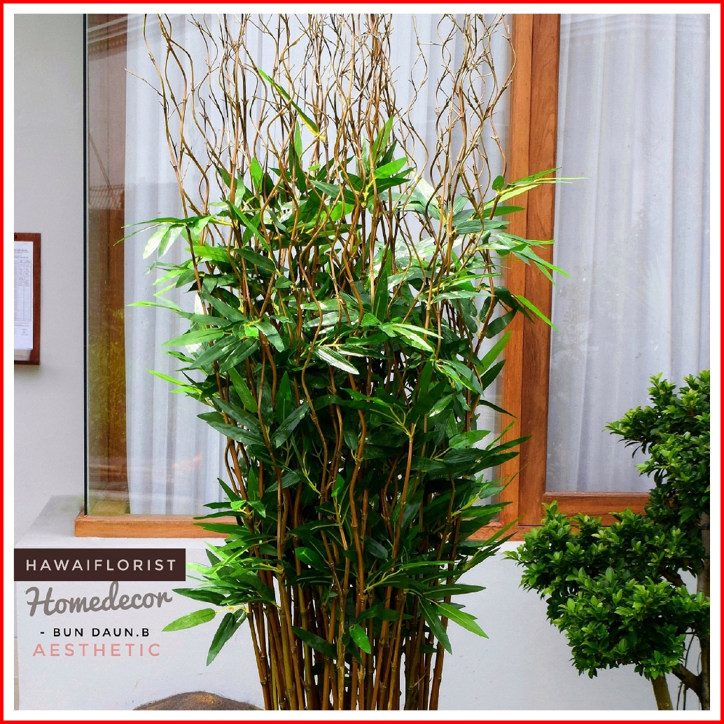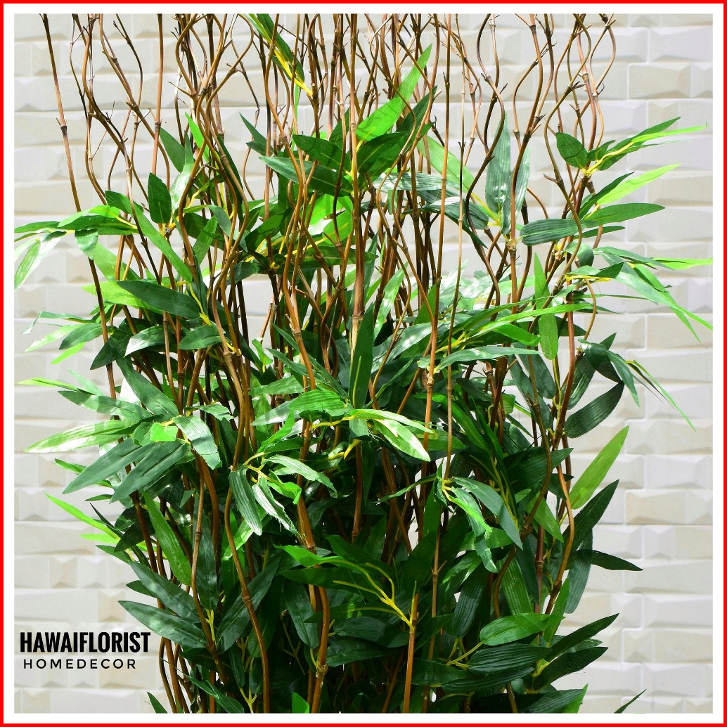 Perlengkapan Rumah Bunga Dekorasi 10 Btg Pohon Bambu Ulir Natural Daun Bambu 142cm Tanpa Pot