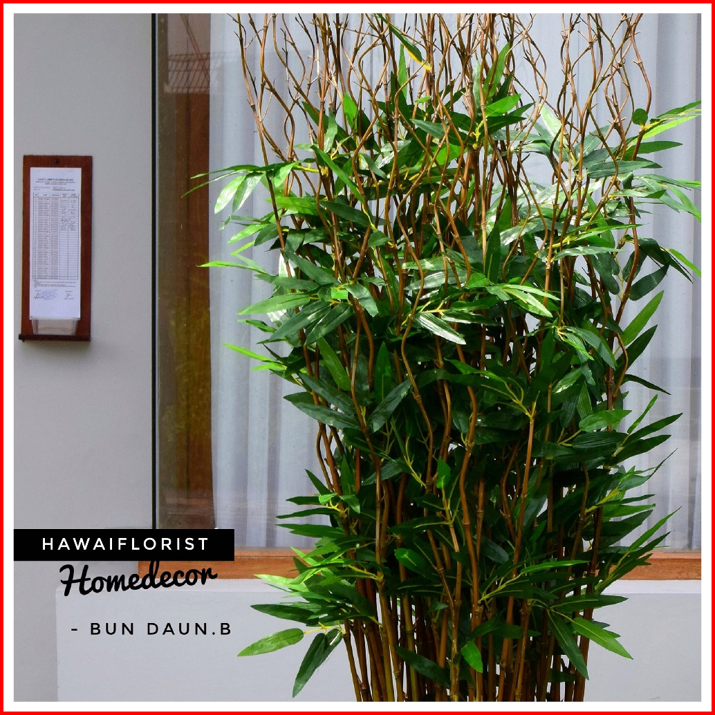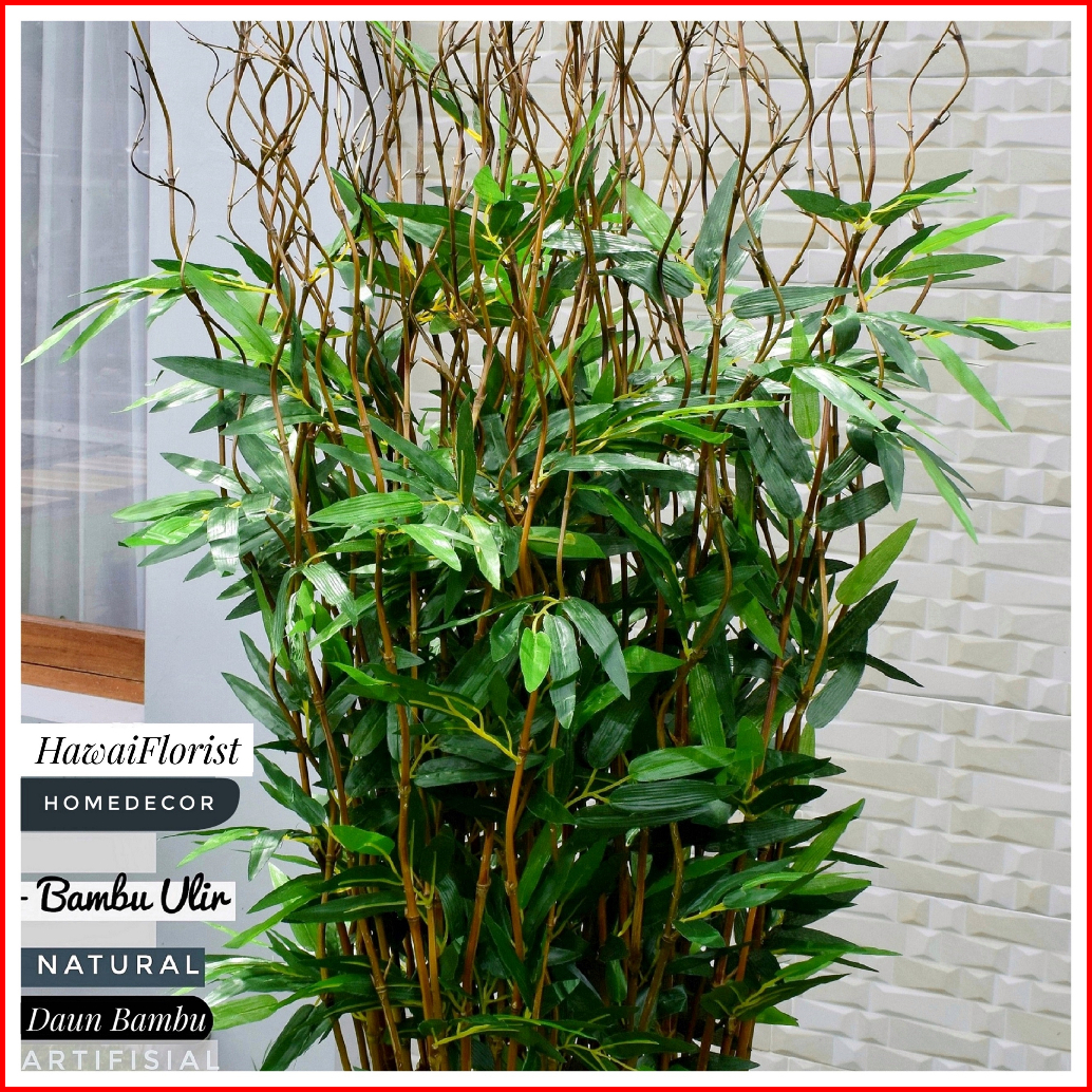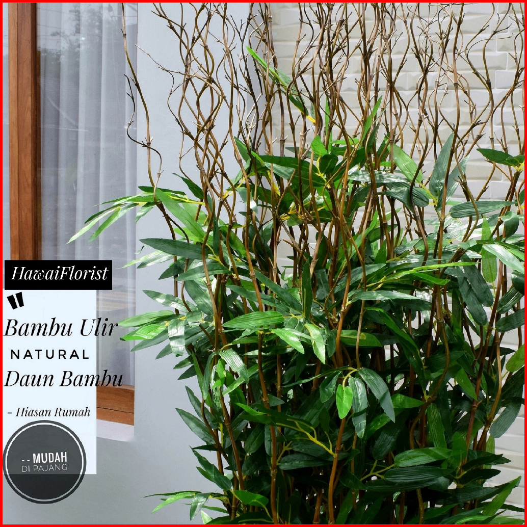 Perlengkapan Rumah Bunga Dekorasi 10 Btg Pohon Bambu Ulir Natural Daun Bambu 142cm Tanpa Pot