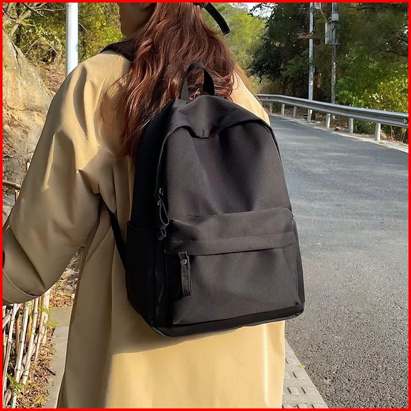 Tas Laptop Ransel Tahan Air Ransel Polos Tas Sekolah Warna Hitam Polos