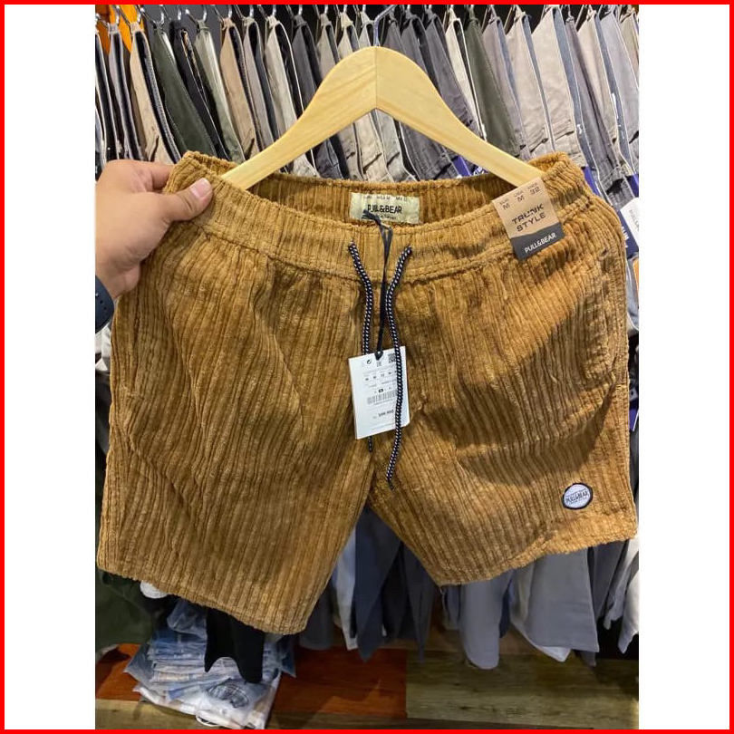 Celana Pendek Pria Santai Branded Corduroy Putih Slim-fitting