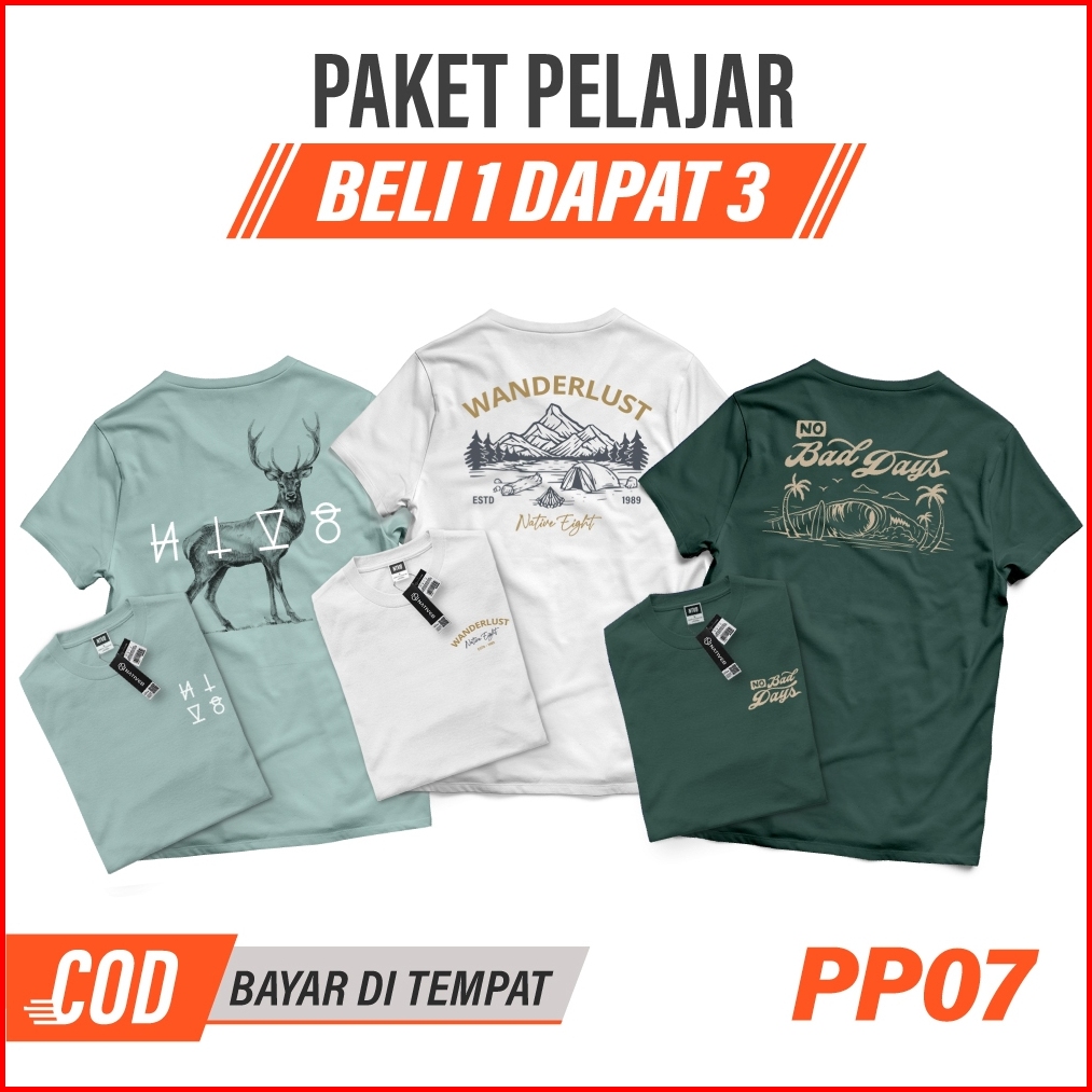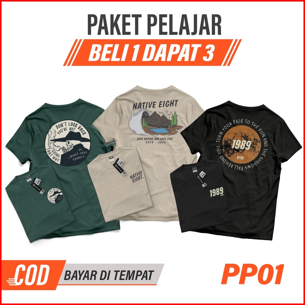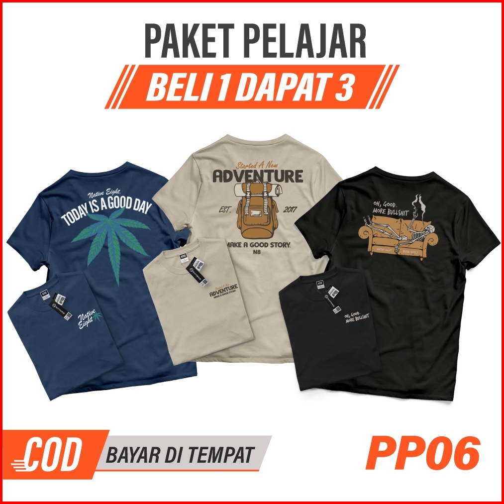 Paket 3 Baju Kaos Distro Native8 Bahan Cotton Combed 30s Premium