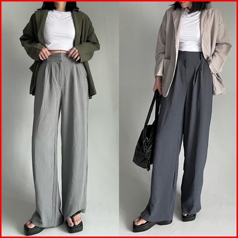 Ypd - Celana Kulot Crinkle Highwaist Wanita Loose Cullote Pants Terkini