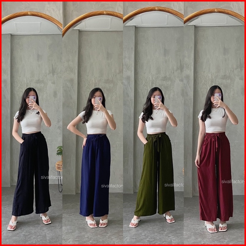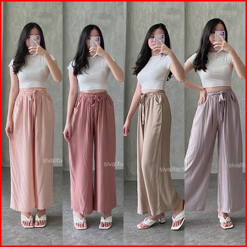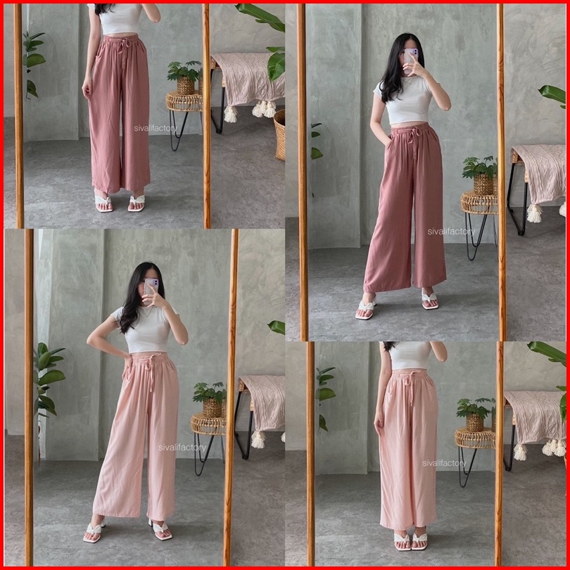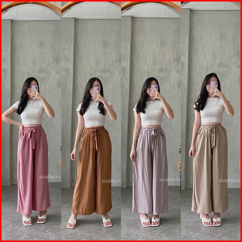 Sivali Celana Kulot Rayon Wanita Loose Cullote Pants Homewear 001