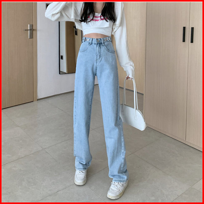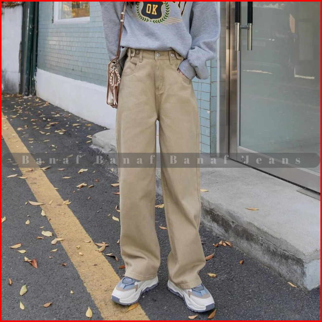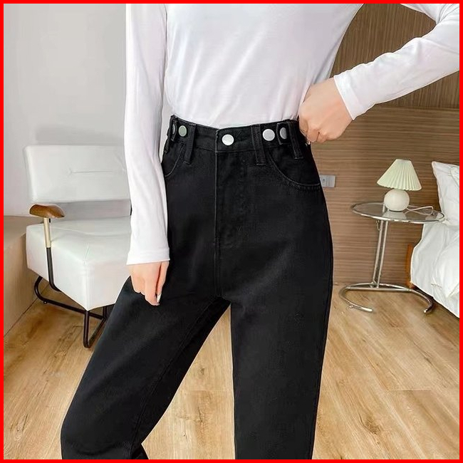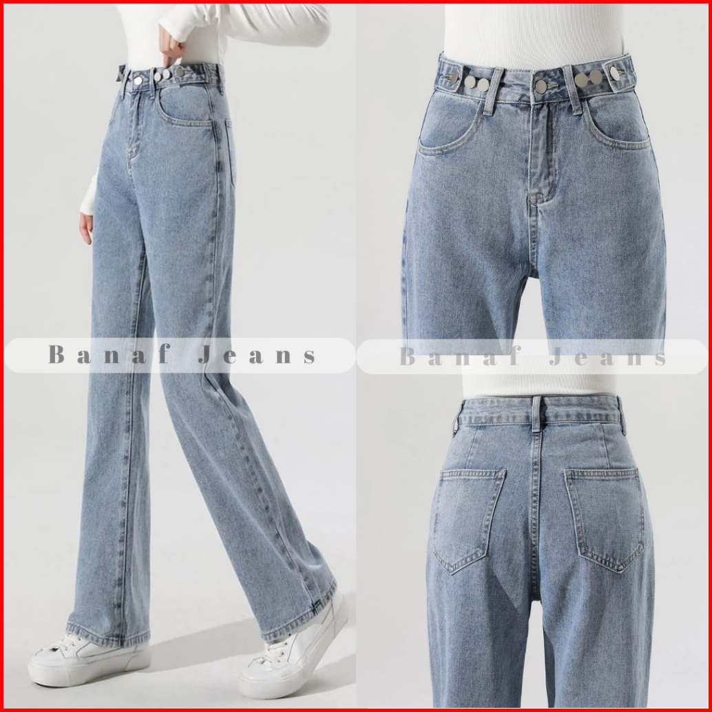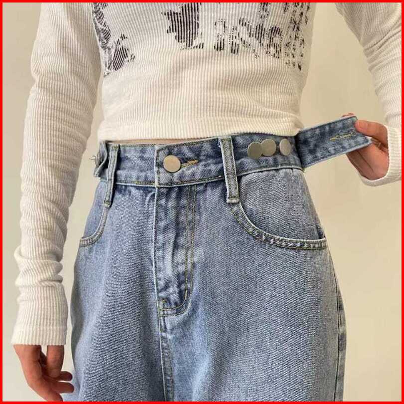Celana Highwaist Jeans Wanita Adjustable Non Stret Pinggang Dapat Di Sesuaikan