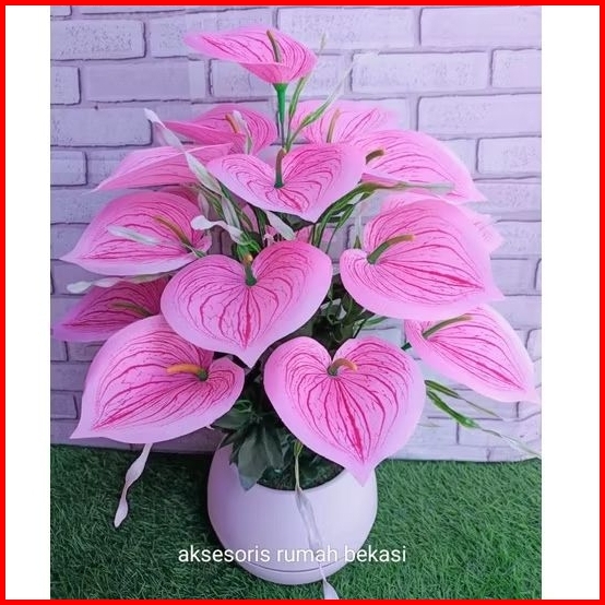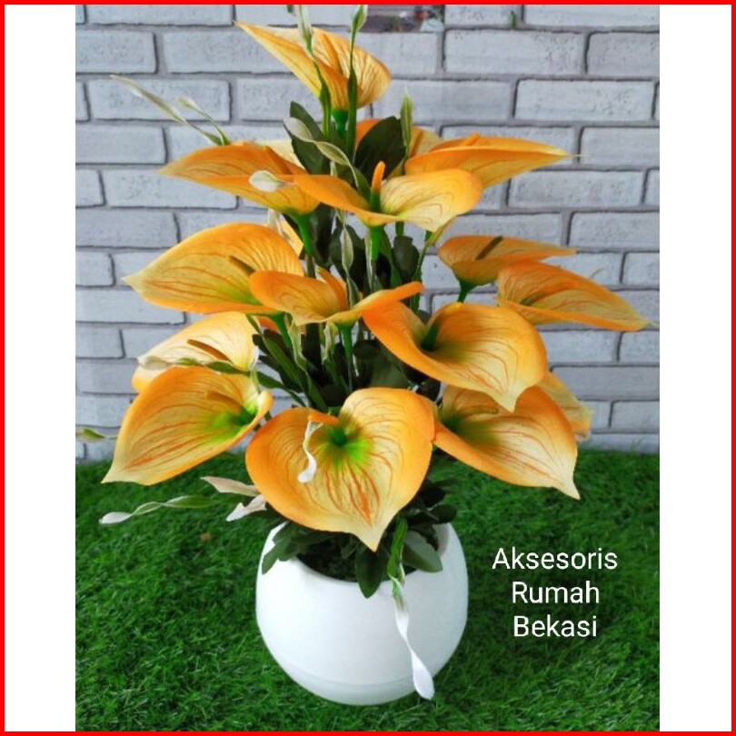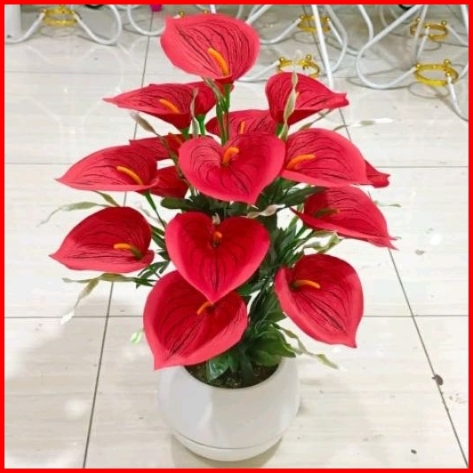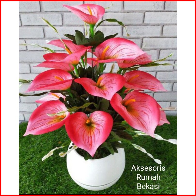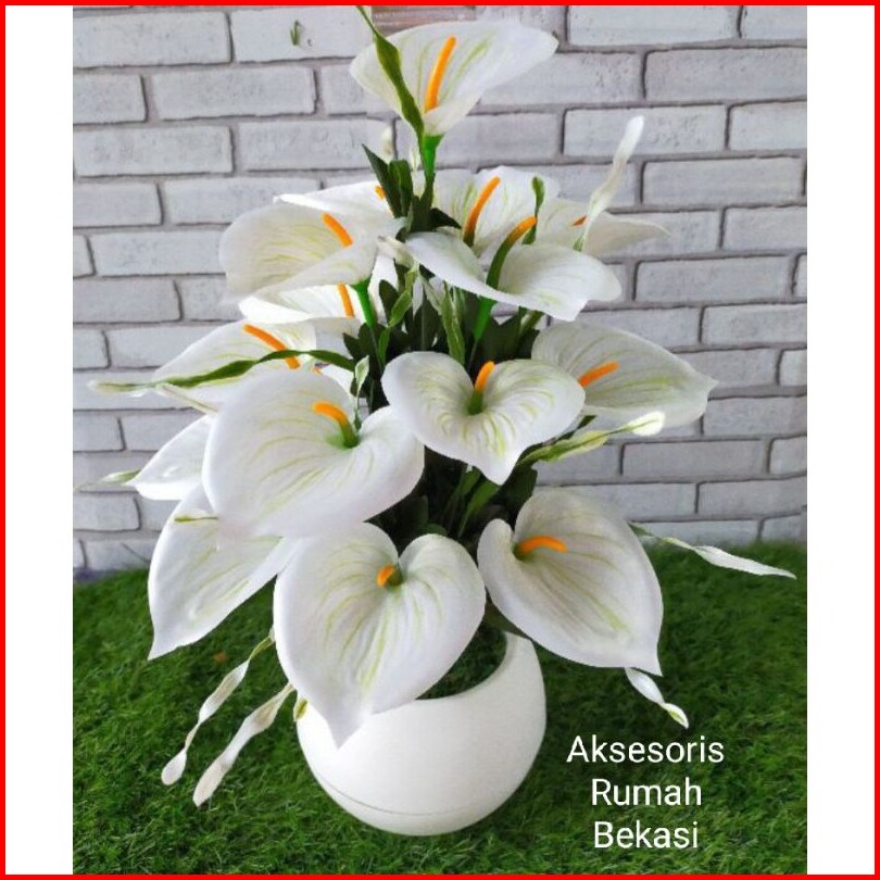 Set Bunga Sudut Anthurium Bunga Lily Bunga Aron Dengan Pot Bola Jumbo