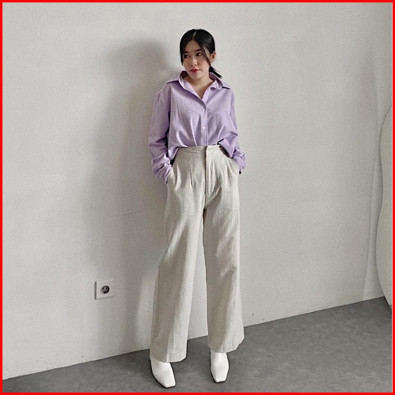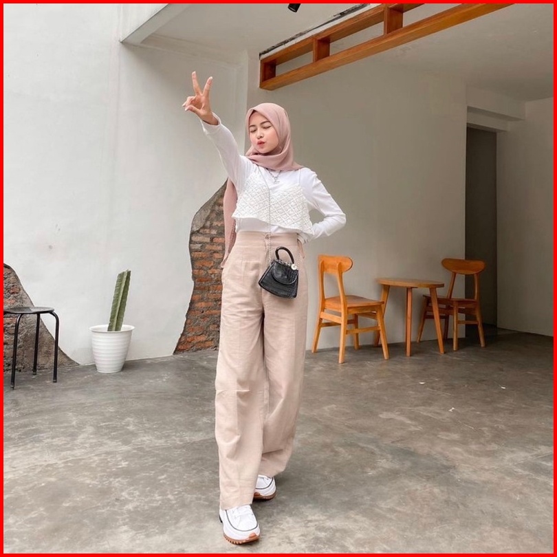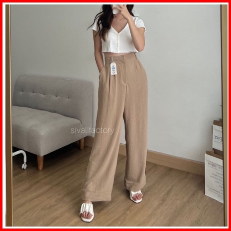 Celana Kulot Kantor Crinkle Highwaist Wanita Loose Cullote Pants Terkini 2508