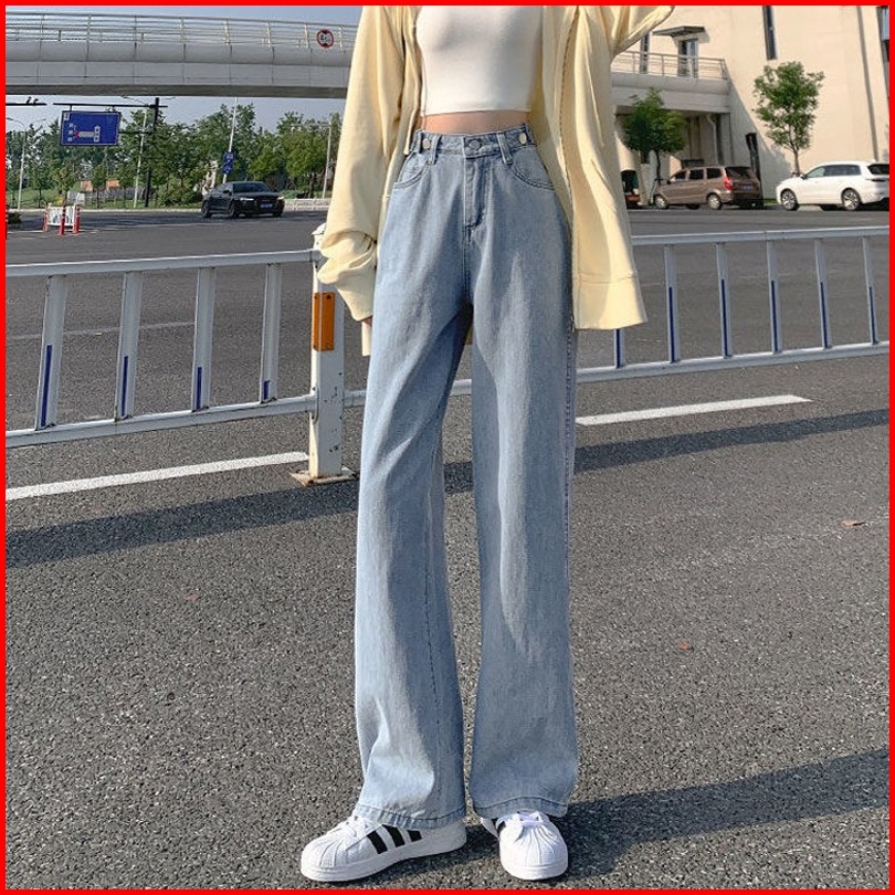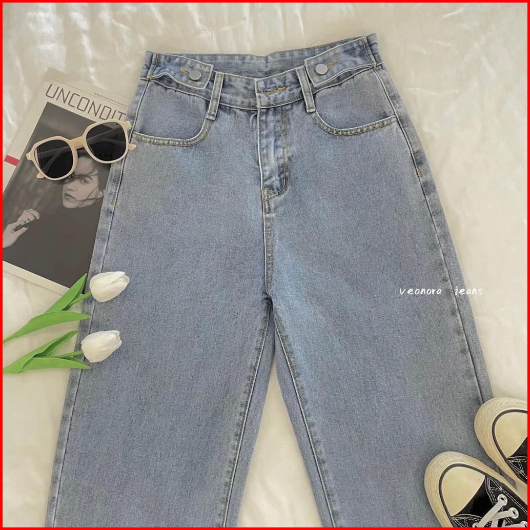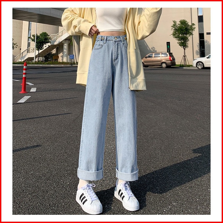 Korean Style Highwaist Straight Loose Kulot Jeans Yang Dapat Disesuaikan Bagy Boyfriend Celana Panjang Jeans Wanita