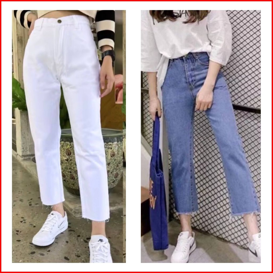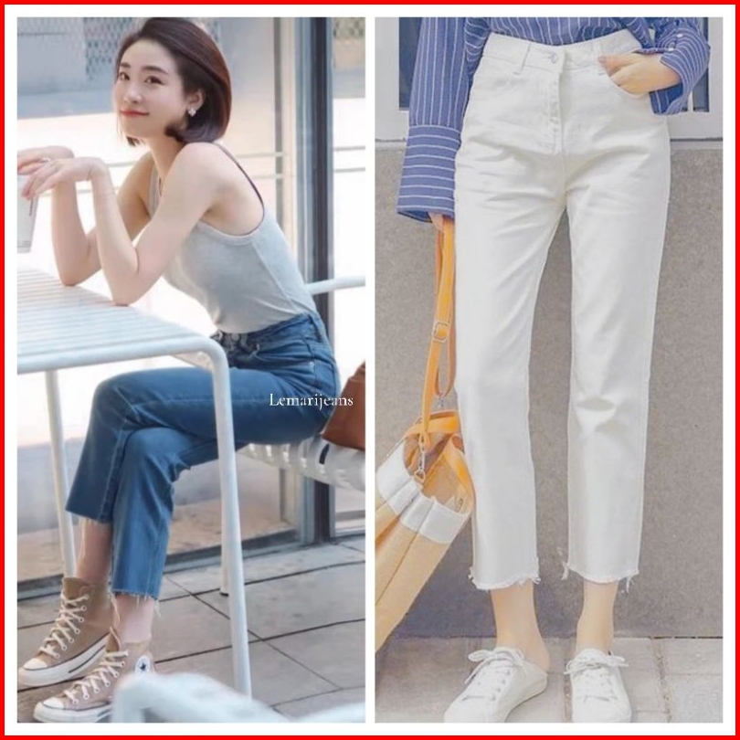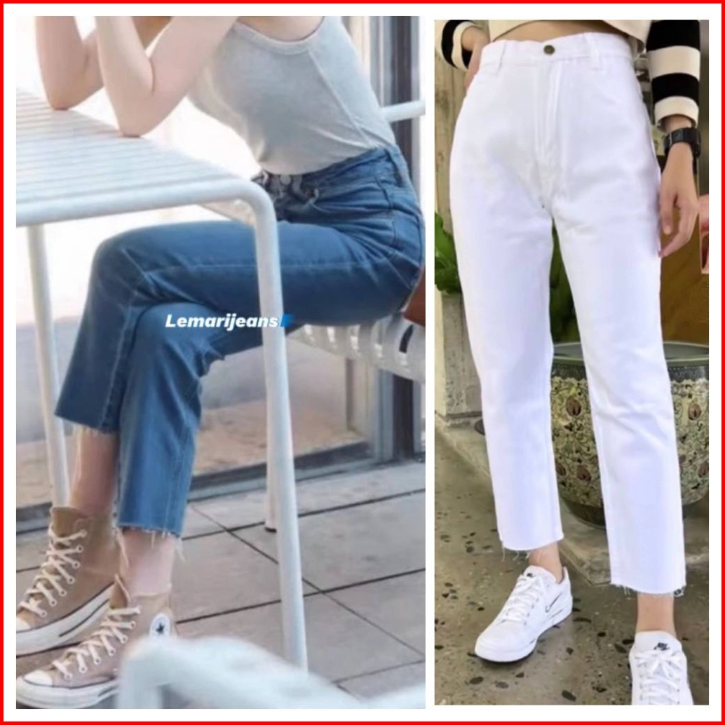 Pengiriman Cepat Boyfriend Unfinished Jeans Kekinian Hw Jeans Celana Highwaist Jeans Haigh Waist Jeans Hw Murah Putih Hi