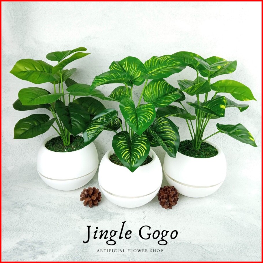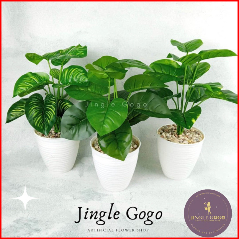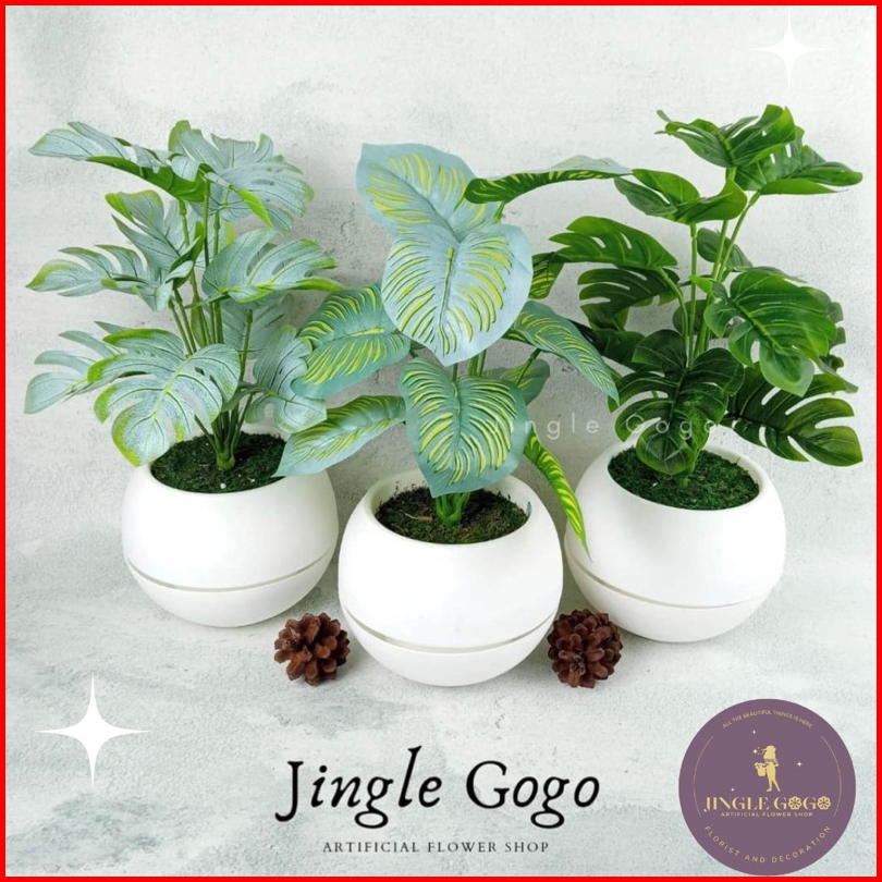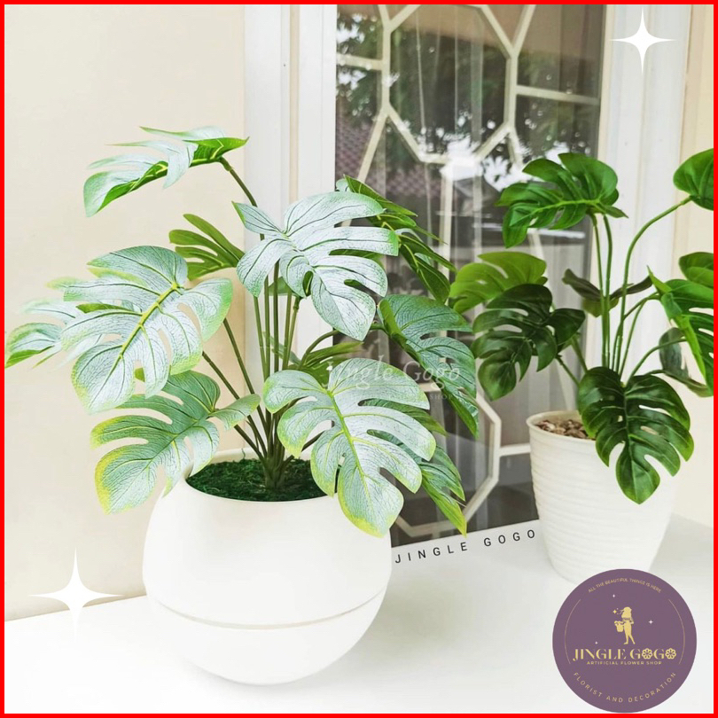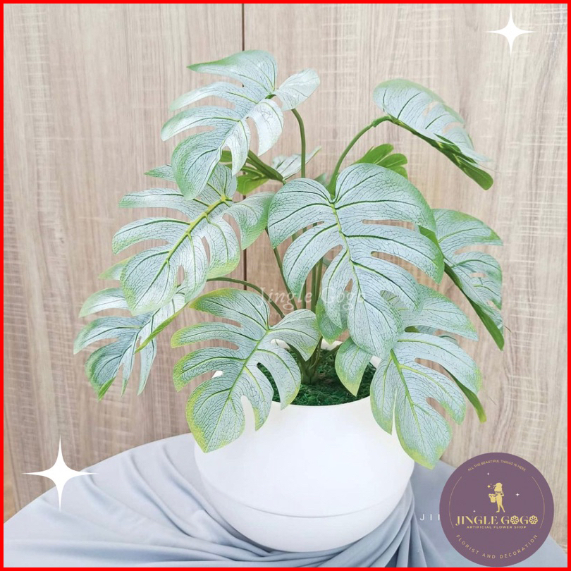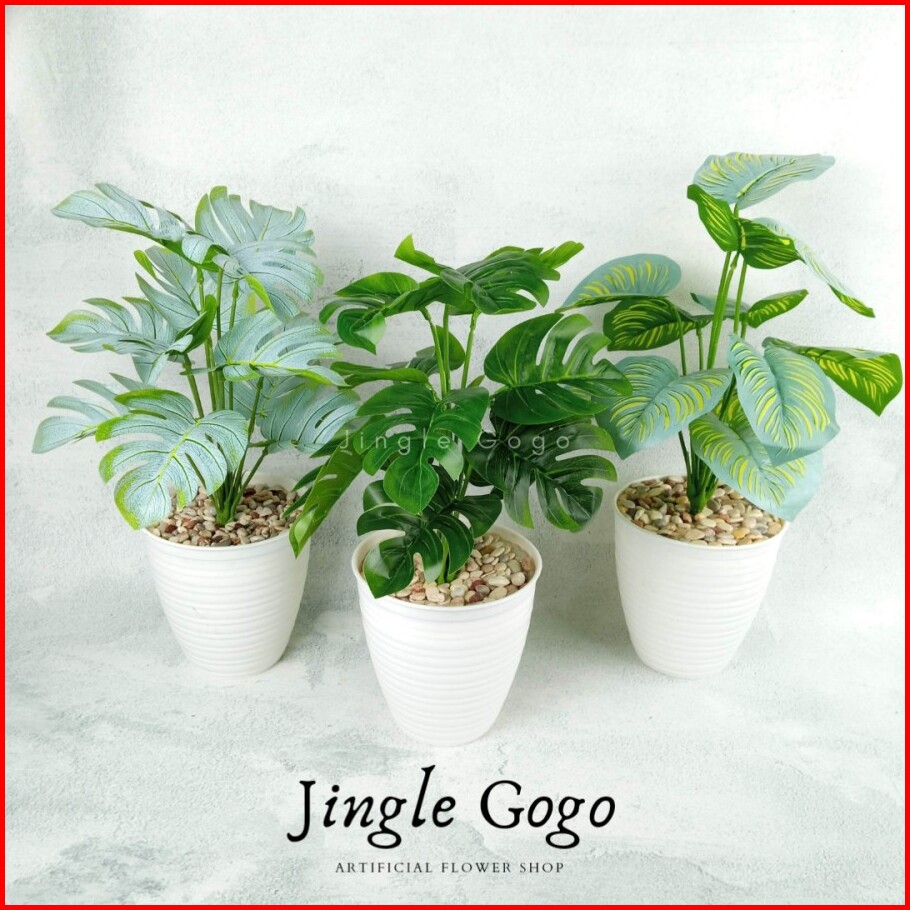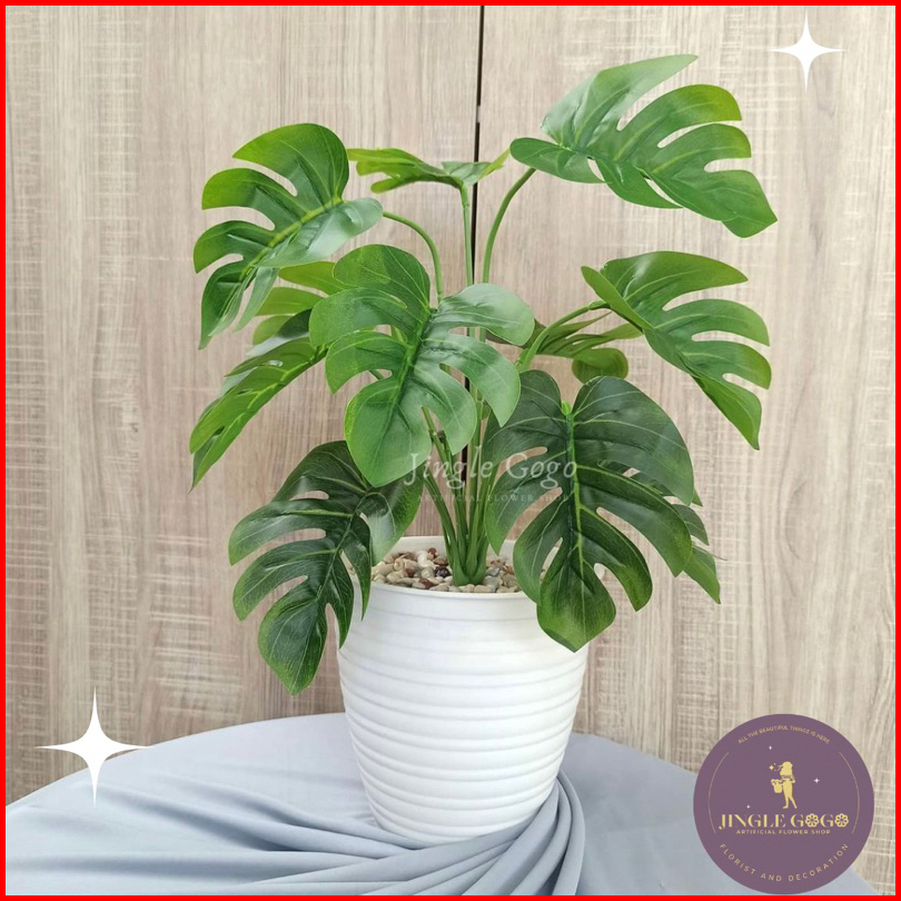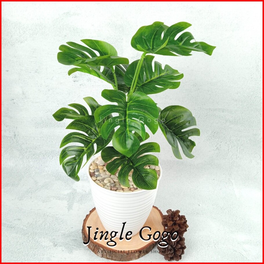 Daun Plastik Monstera Rimbun Termasuk Pot Hiasan Meja Tanaman Hias Artificial Dekorasi Rumah B478