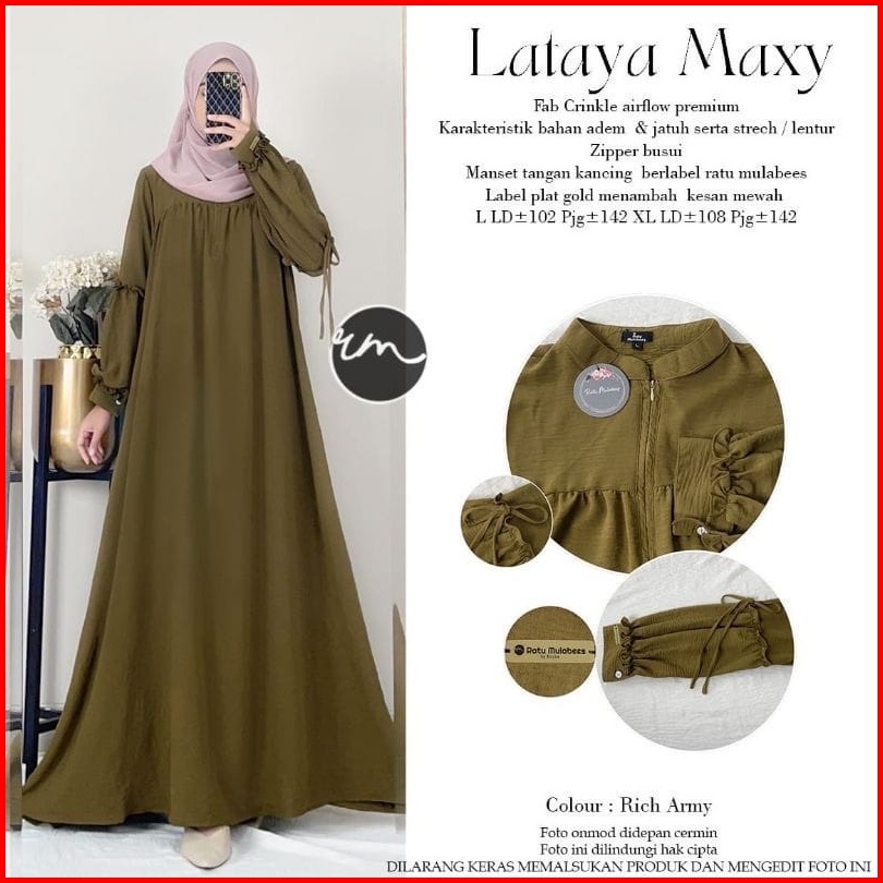 Dizzah Gamisku Dress Lataya Maxy Cringkle Airflow Gamis Polos Bahan Kringkle Premium Ld 110- 120 Gamis Wanita Busui Frie