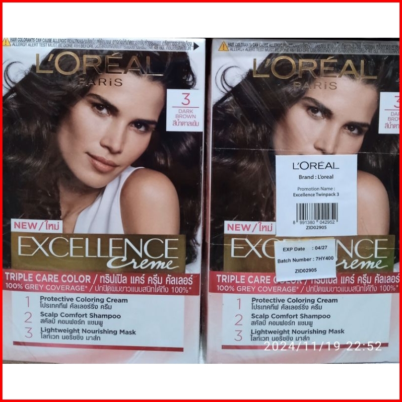 Loreal Excellence Hair Color Loreal Cat Rambut Dark Brown 3 Black Moka Brown 4.25 Loreal Pewarna Rambut Original.