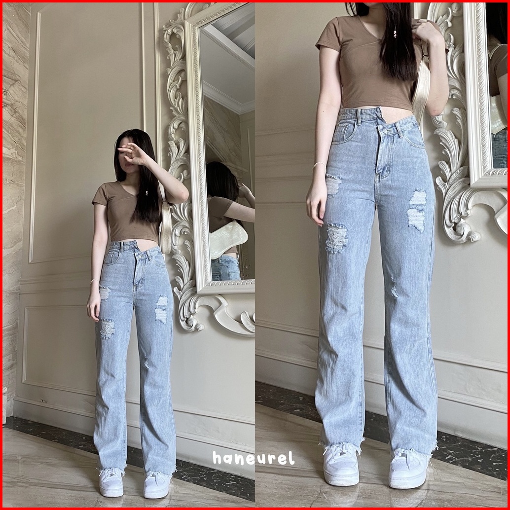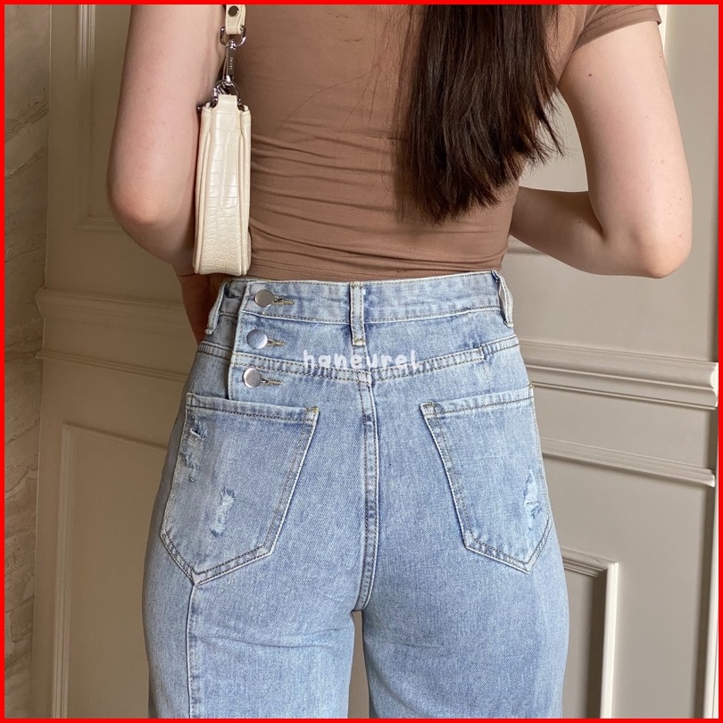 Yeji Jeans - Celana Baggy Jeans Wanita Unique Styling Button Details Korean Looks Xs - Xxl