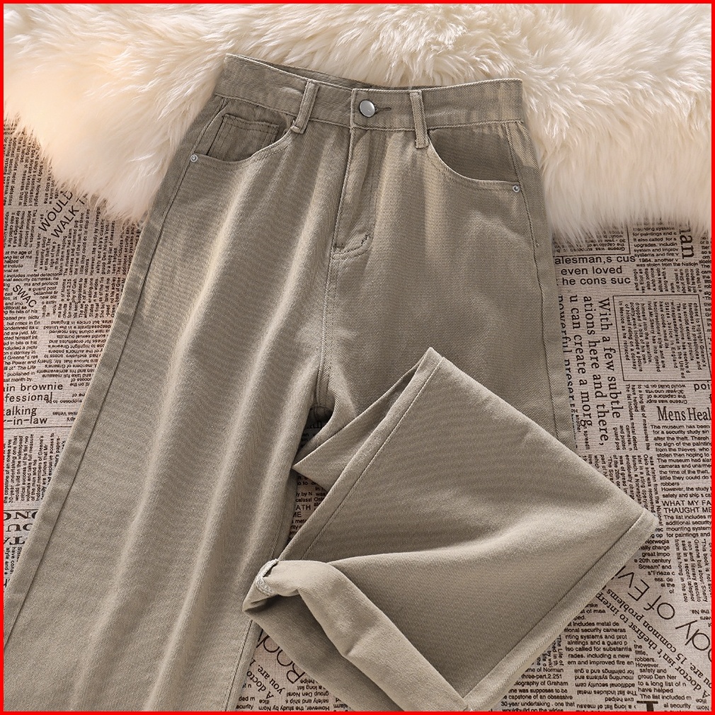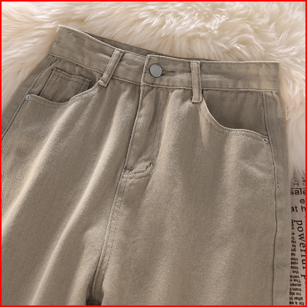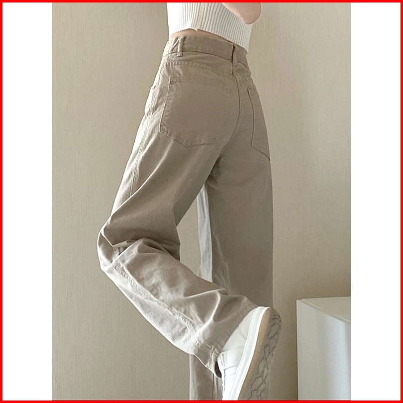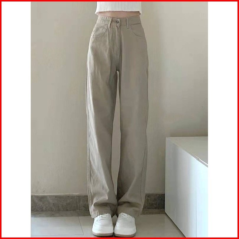 Warna Khaki Highwaist Loose Kasual Celana Jeans Panjang Wanita