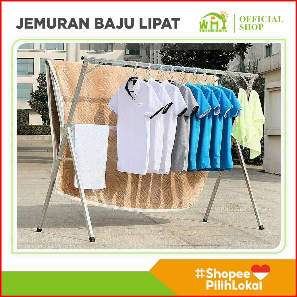 World Home Jemuran Baju Lipat Jemuran Pakaian Anti Karat Kuat Jemuran Baju Portable Jemuran Lipat