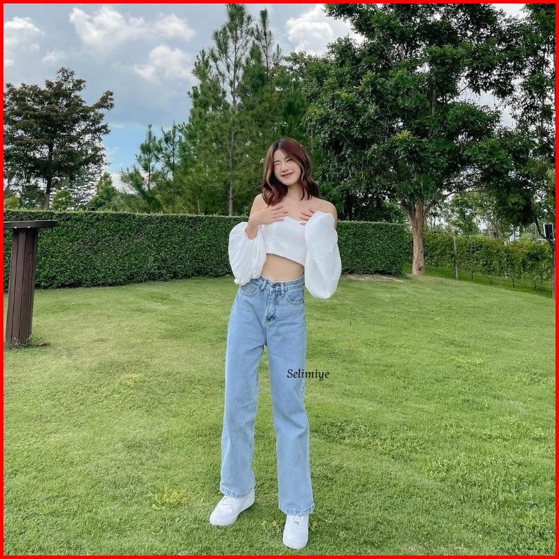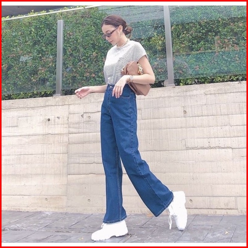 Celana Highwaist Kulot Jeans Loose Wanita-promo