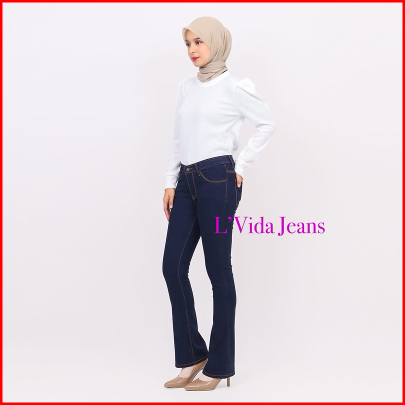 Lvida Celana Cutbray Jeans Wanita Highwaist Stretch Davida Panjang Anti Ngatung Kekinian 2021