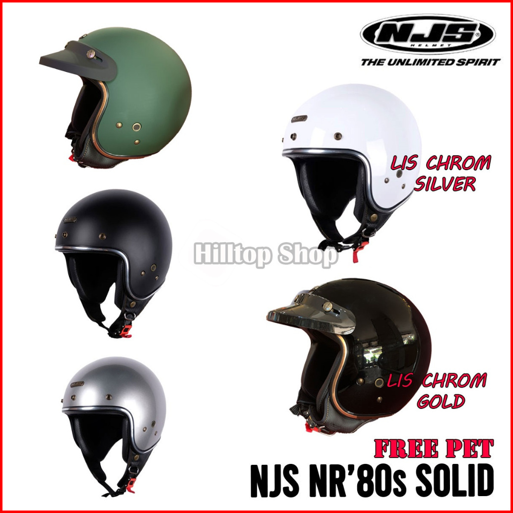 Helm Njs Nr 80s Solid Retro Half Face Motorcycle Helmet