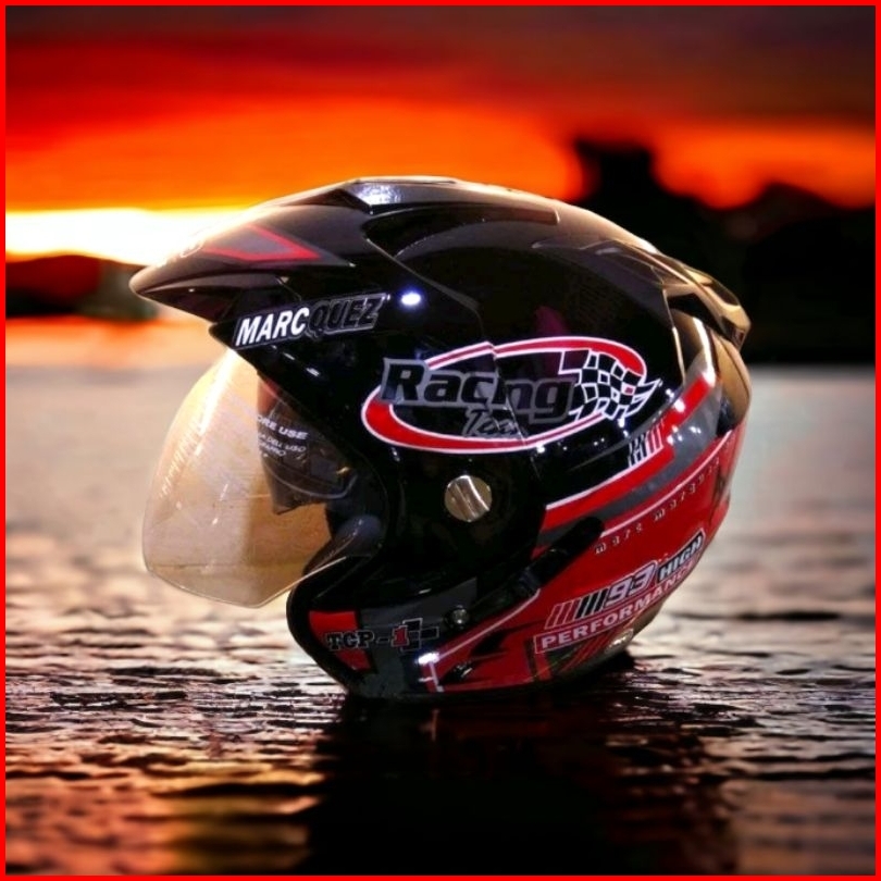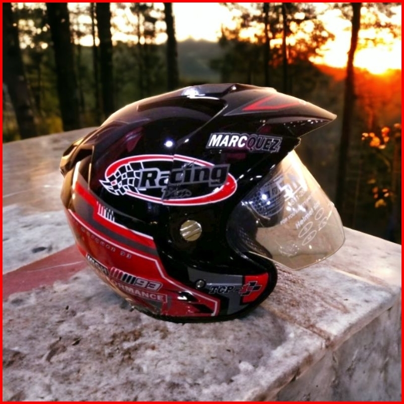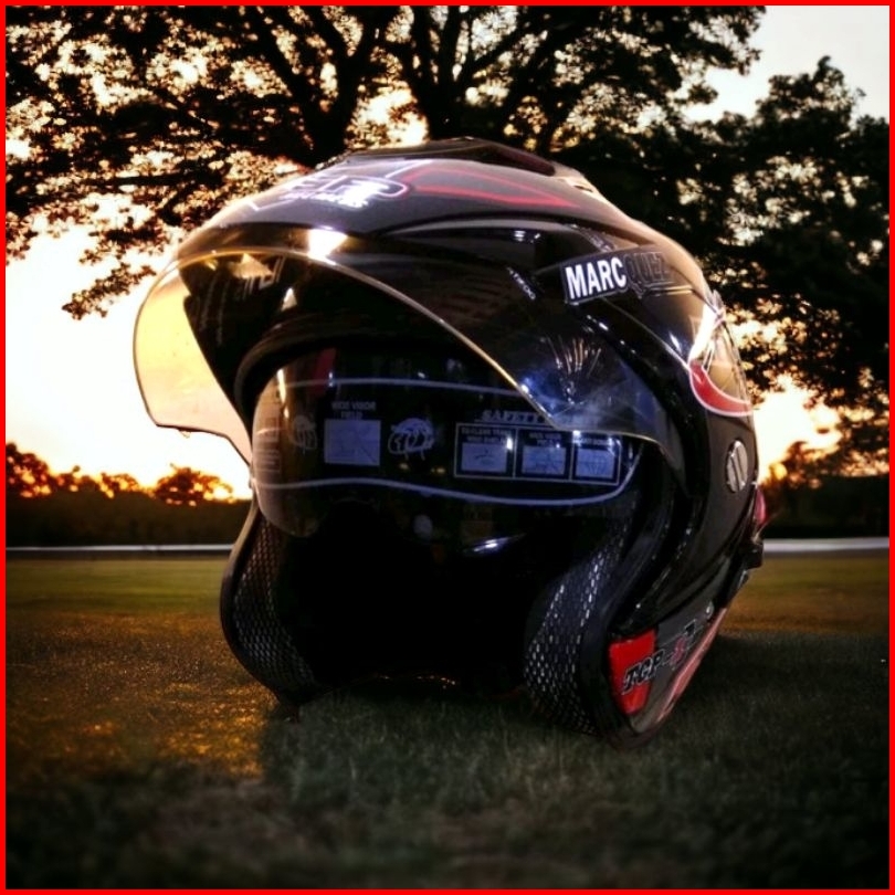 Helm Pria Dewasa Double Visor Racing Marc Marquez 93 Hitam Merah Setara