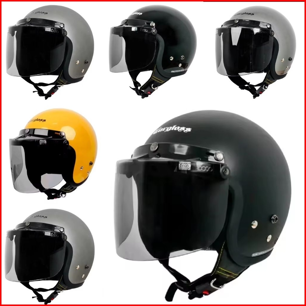 Helm Bogo Retro Dewasa Full Leher Kaca Datar Carglos