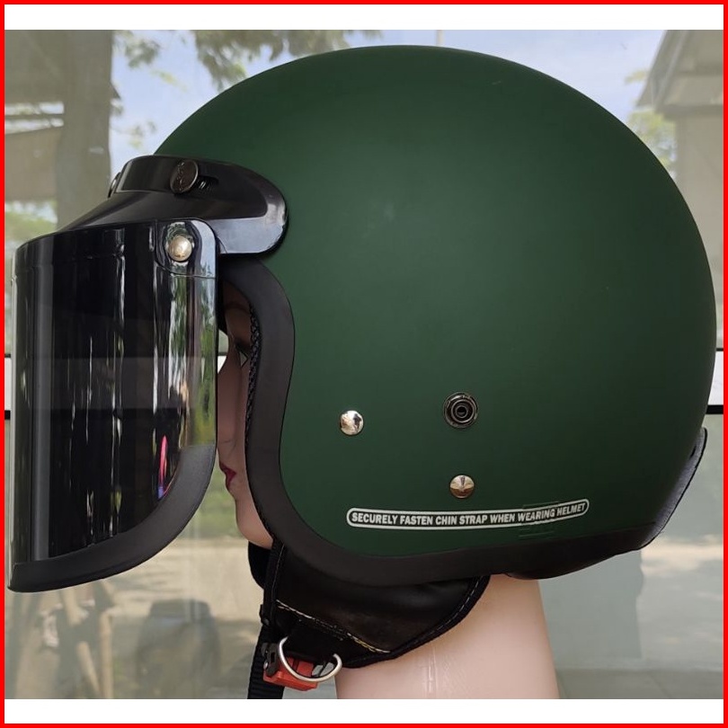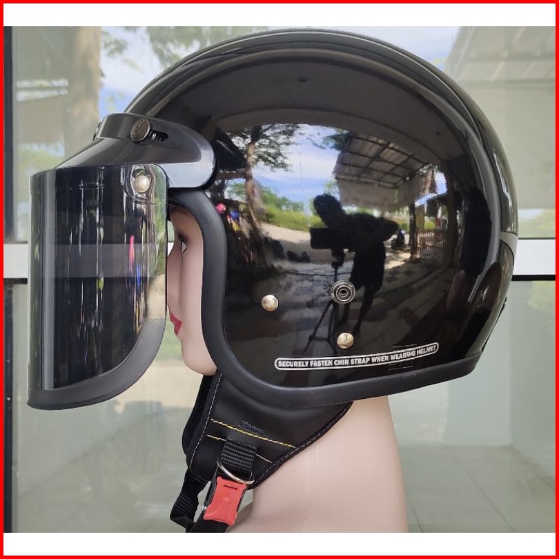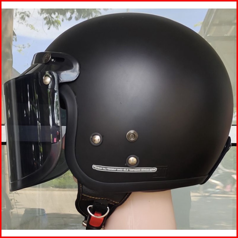 Helm Bogo Dewasa Full Leher Retro Sni Kaca Datar Kekinian