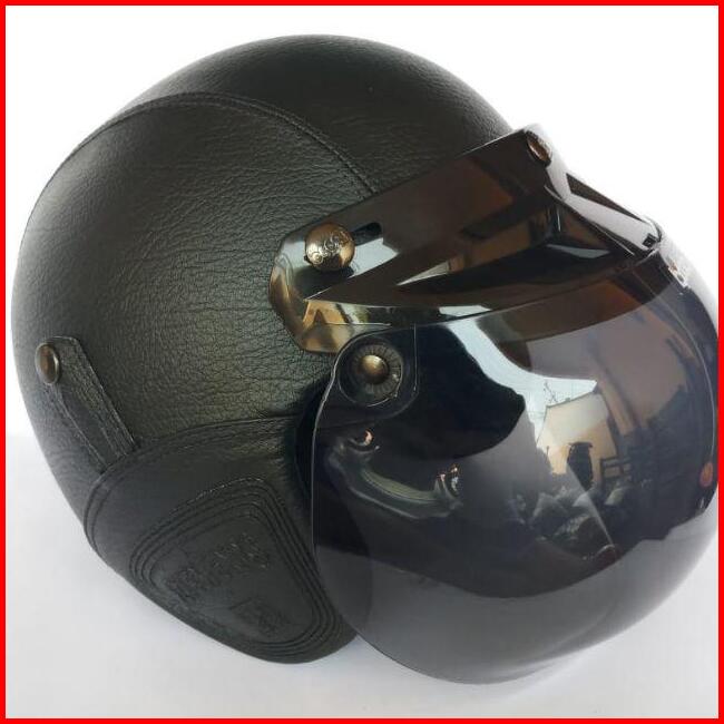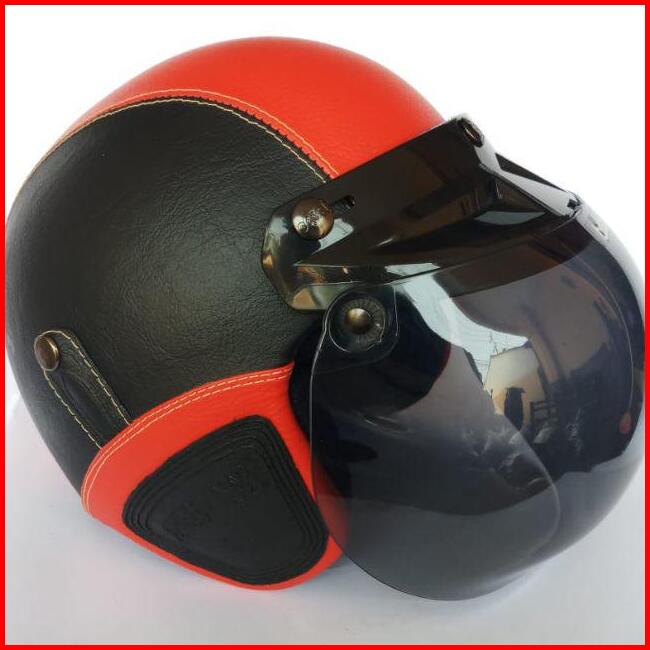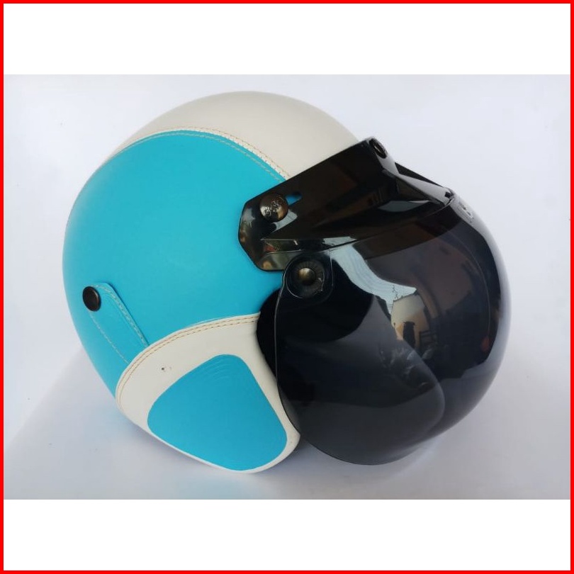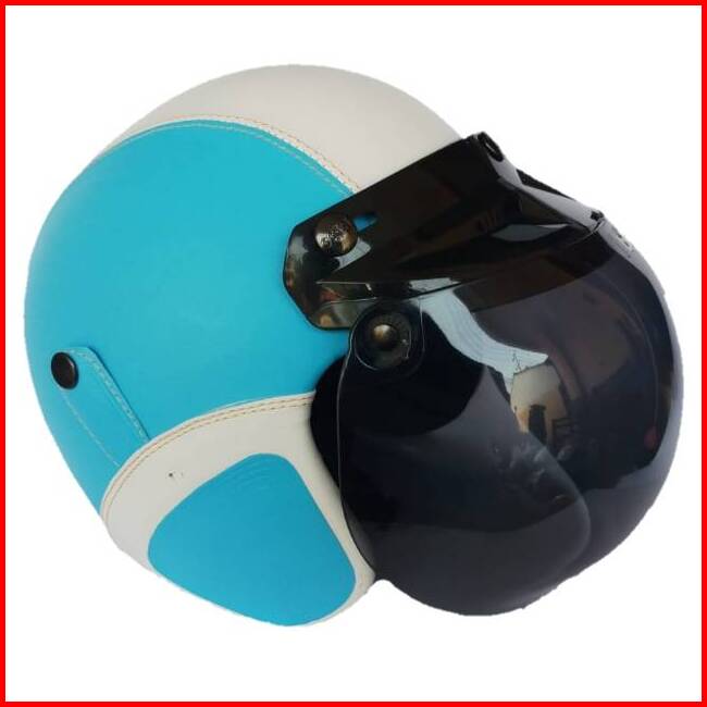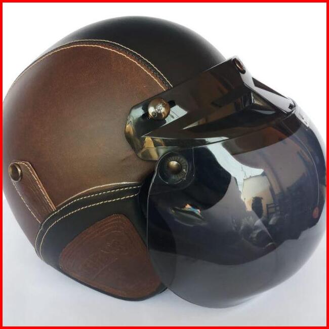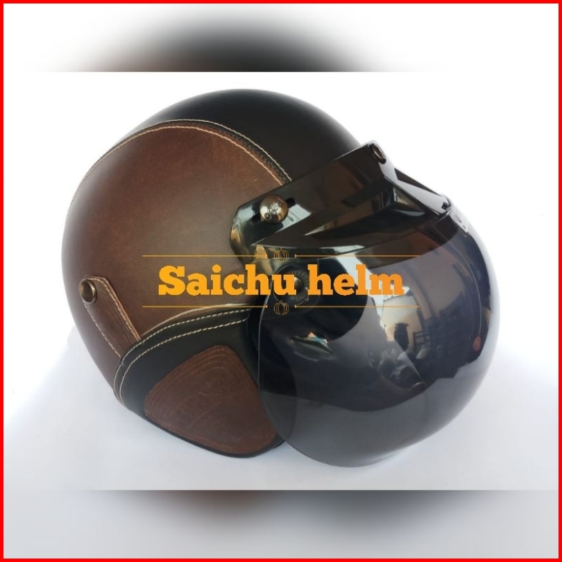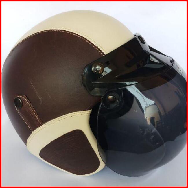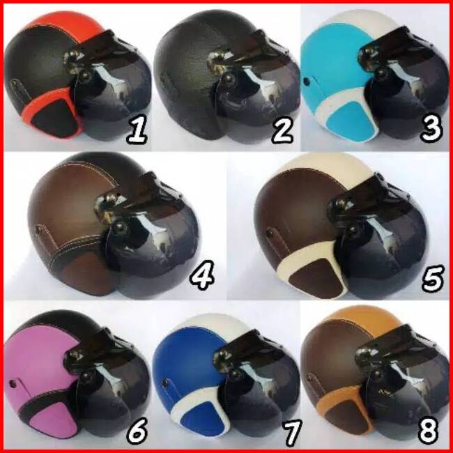 Helm Bogo Dewasa Full Kulit Retro Hitam Coklat Merah Kuning Cream Biru Hijau Sni Centro