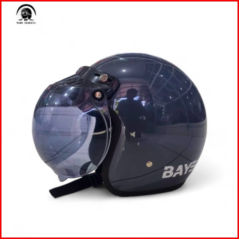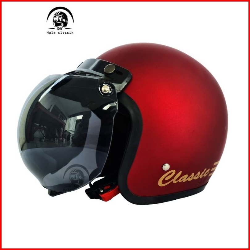 Helm Bogo Bay Classic Dewasa Garis Tiga Kaca Cembung Sni Murah Polos Kaca Datar Flat