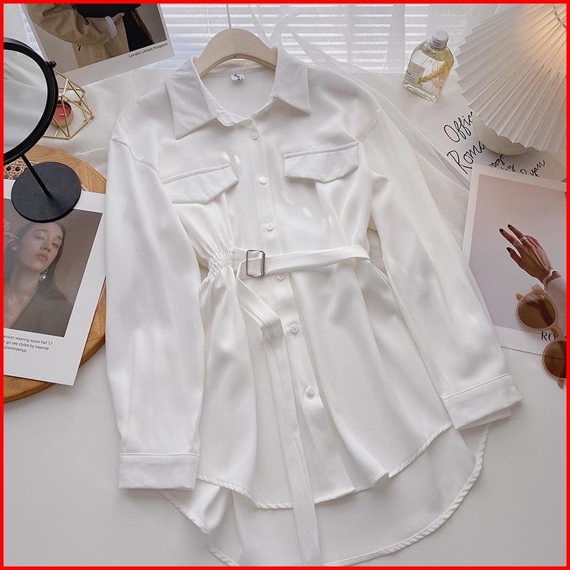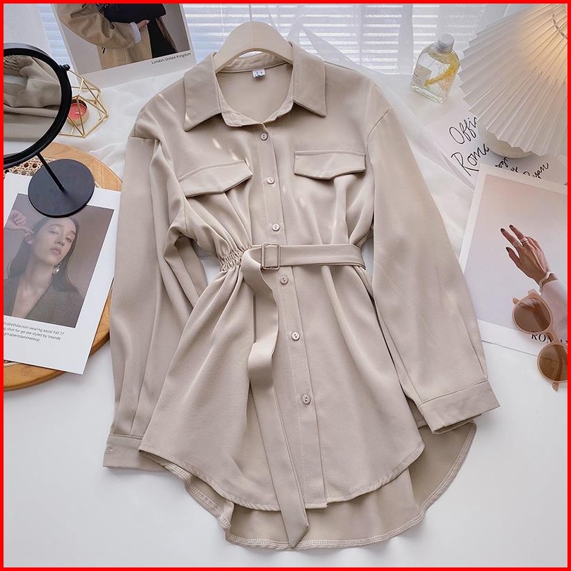 Konveksibandung - Ervia Atasan Kemeja Wanita Casual Lengan Panjang Korean Style Modis Kekinian