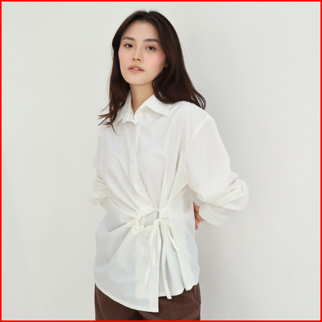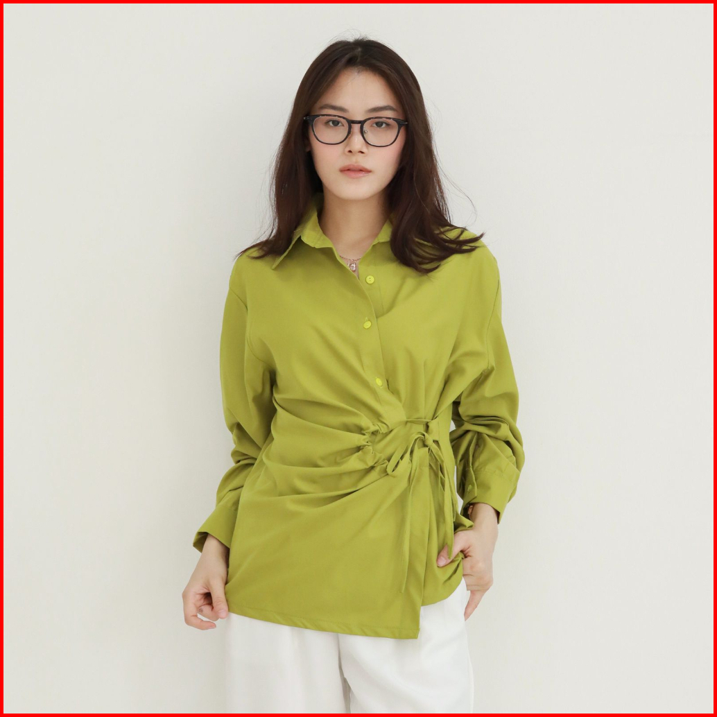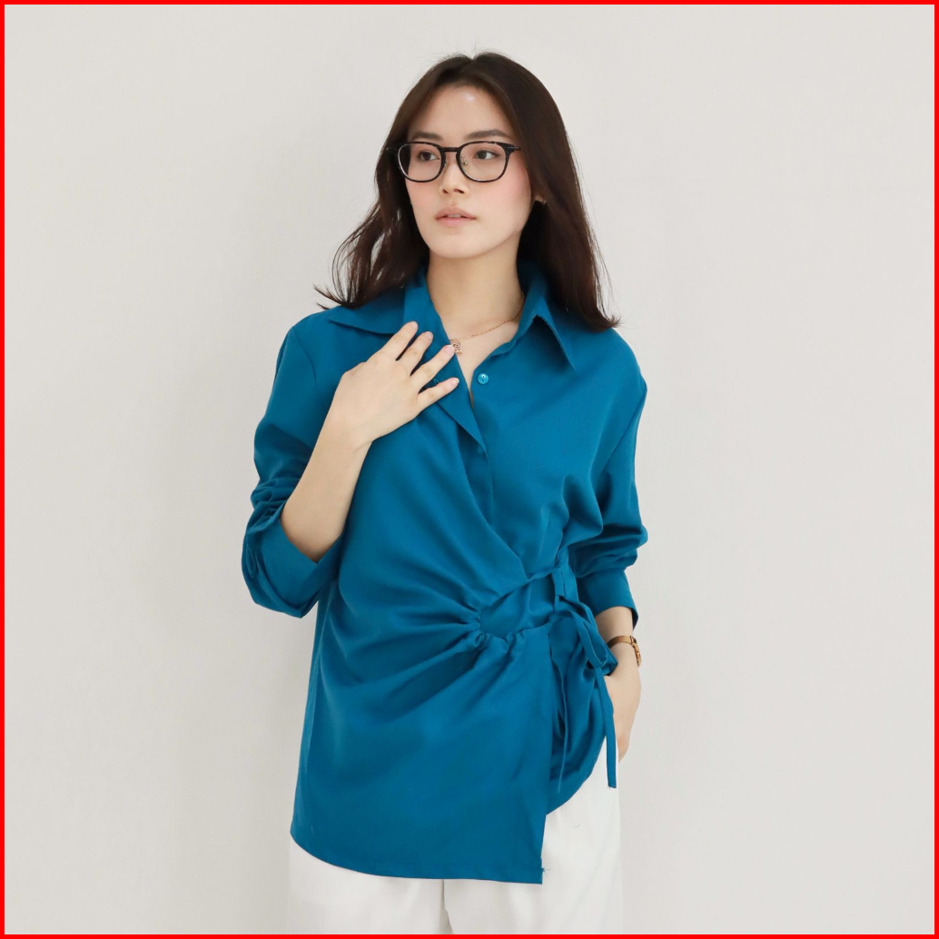 Msmo Karis Assymetrical Shirt Blouse Wanita Basic Kemeja Wanita Casual Brown Grey