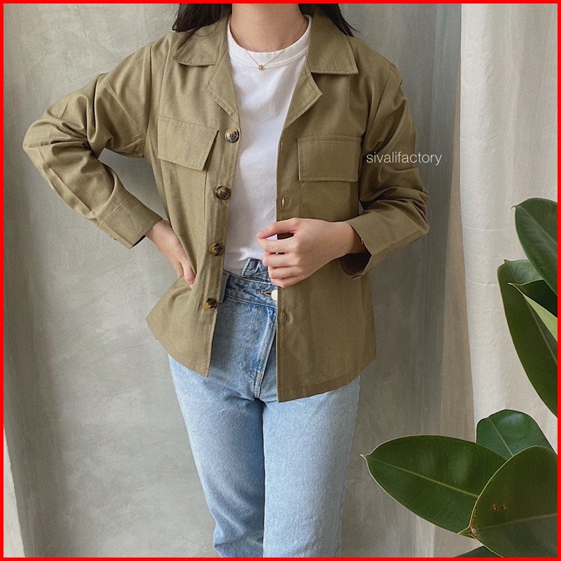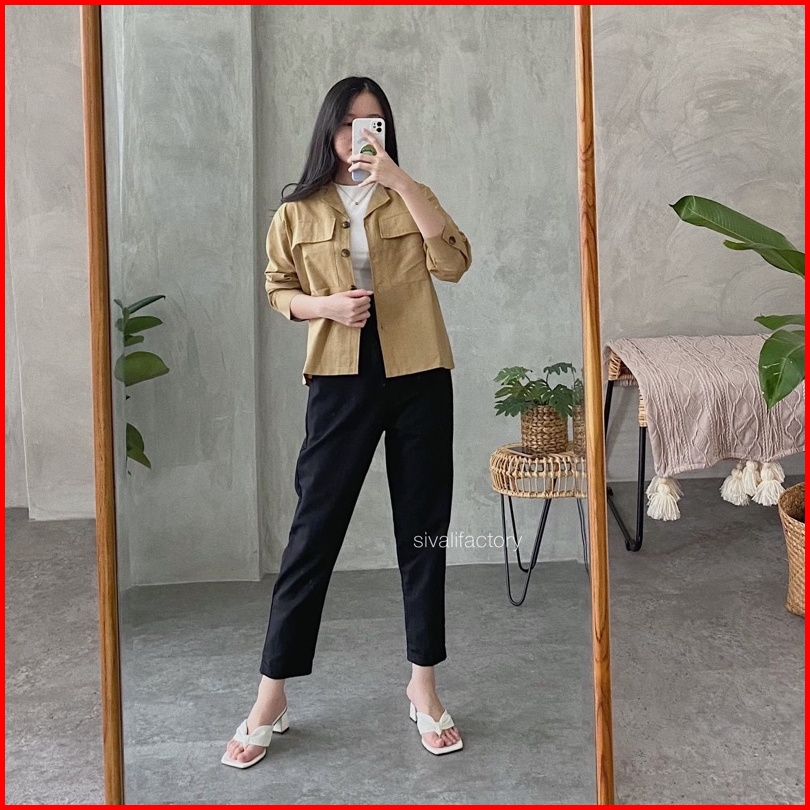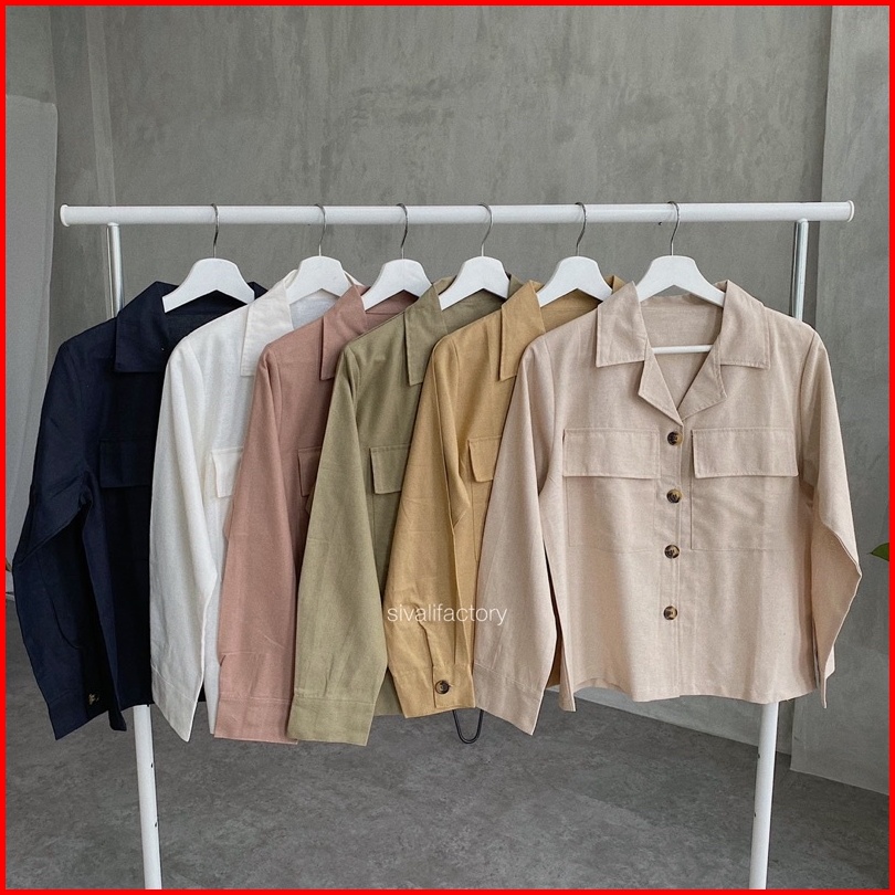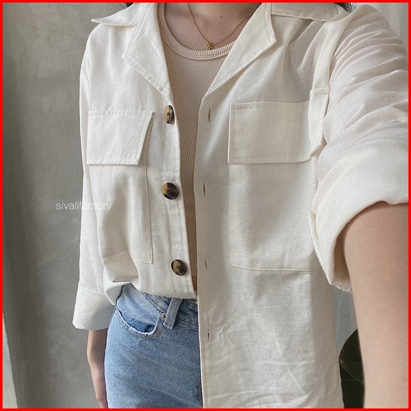 Sivali Claryn Outer Linen - Kemeja Linen - Atasan Wanita Kardigan Saku 2278