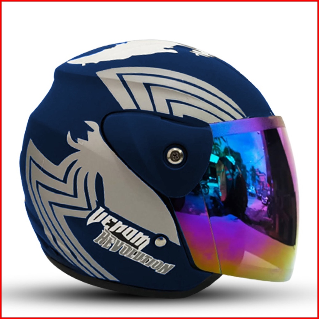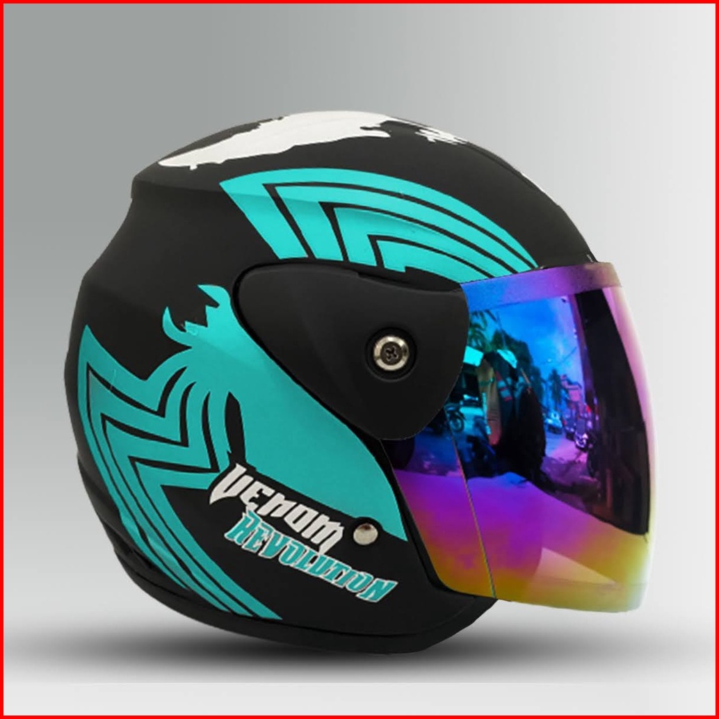 Helm Half Face Evo Evolution Venom Kaca Silver Pelangi - Helm Premium Untuk Pria Dan Wanita Dewasa Sni