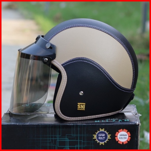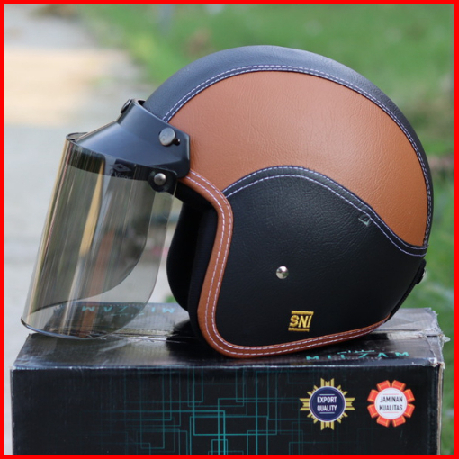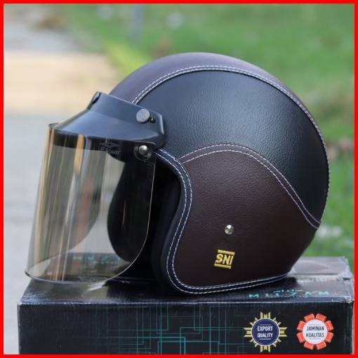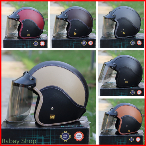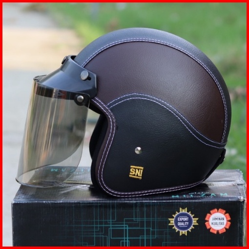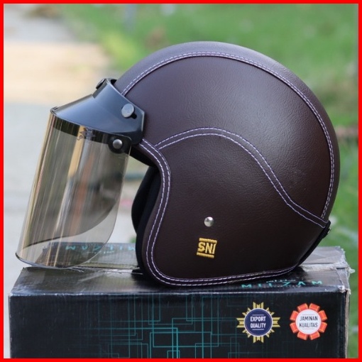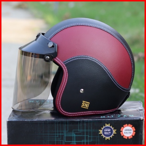 Helm Bogo Full Kulit Pria Dewasa Original Retro Sni Wanita Hijab Cewek Cowok Helem Original