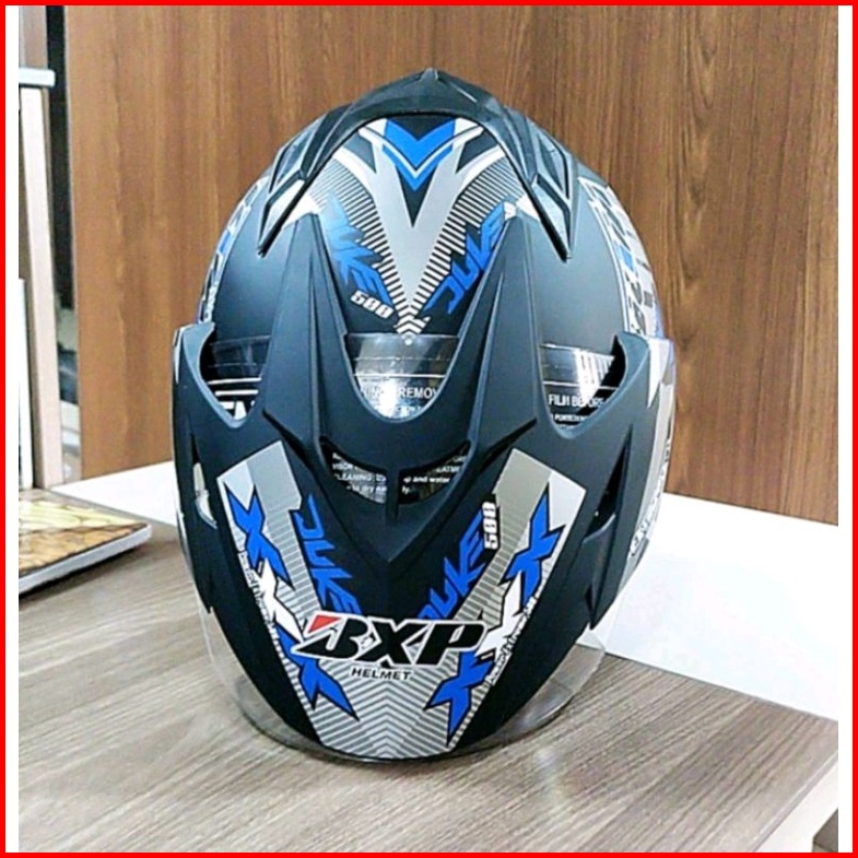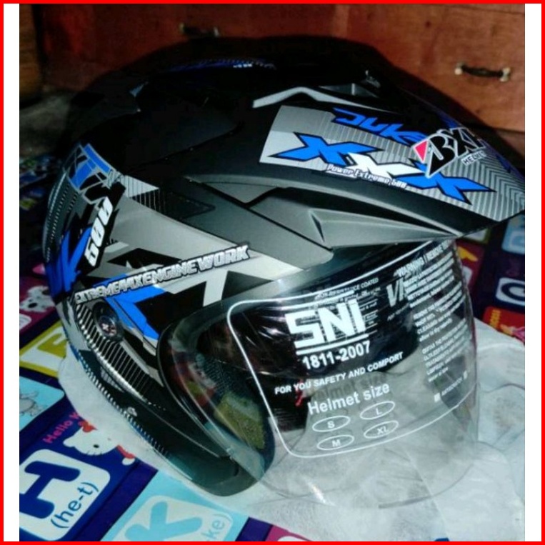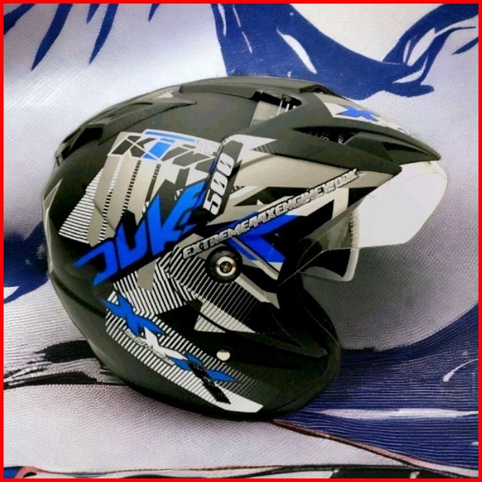 Helm Sepeda Motor Sni Bxp Original 2 Kaca Double Visor Duke Biru