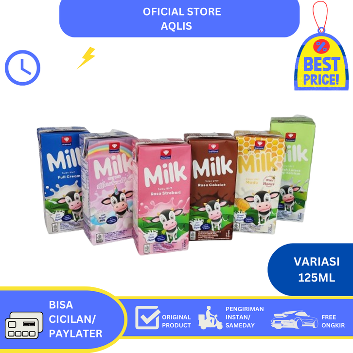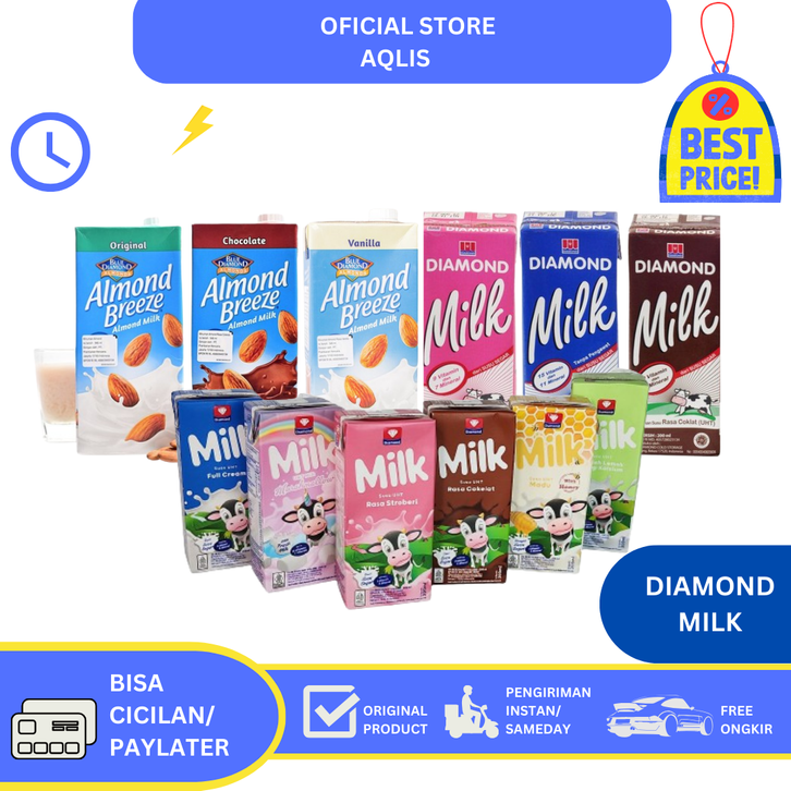 STROBERI 200 ML, COKELAT 200 ML, MARSHMALLOW 125 ML, HONEY 125 ML, ALMOND BREEZE COKELAT 946 ML, ALMOND BREEZE ORIGINAL 946 ML, ALMOND BREEZE VANILLA 946 ML, FULL CREAM 1 LITER, 1 LITER X 12, ORIGINAL 200 ML 24 PCS