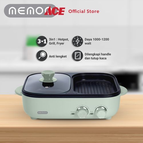 ACE MEMOO 1.5 LTR MULTI COOKER 3 IN 1 HIJAU ALAT MASAK LISTRIK SERBAGUNA GRILL PAN AND POT PEMANGGANG PEREBUS KITCHEN