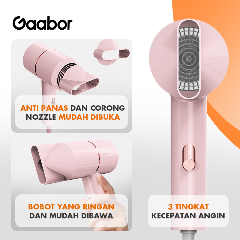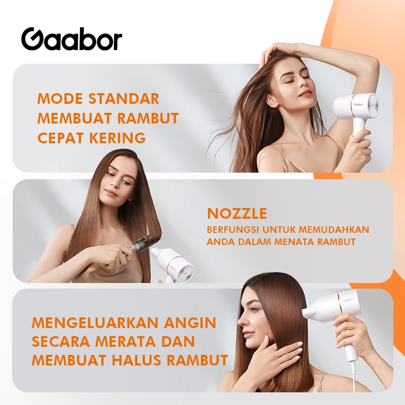 GAABOR HAIR DRYER 220 V PENGERING RAMBUT PROFESIONAL ANTI FRIZZ BODI RINGAN NOZZLE