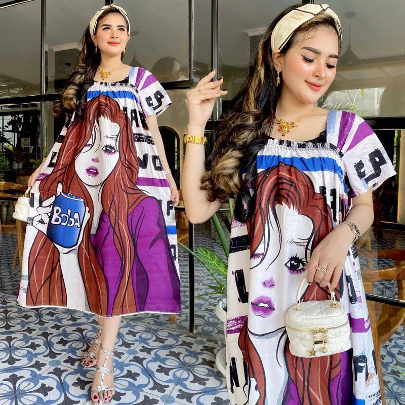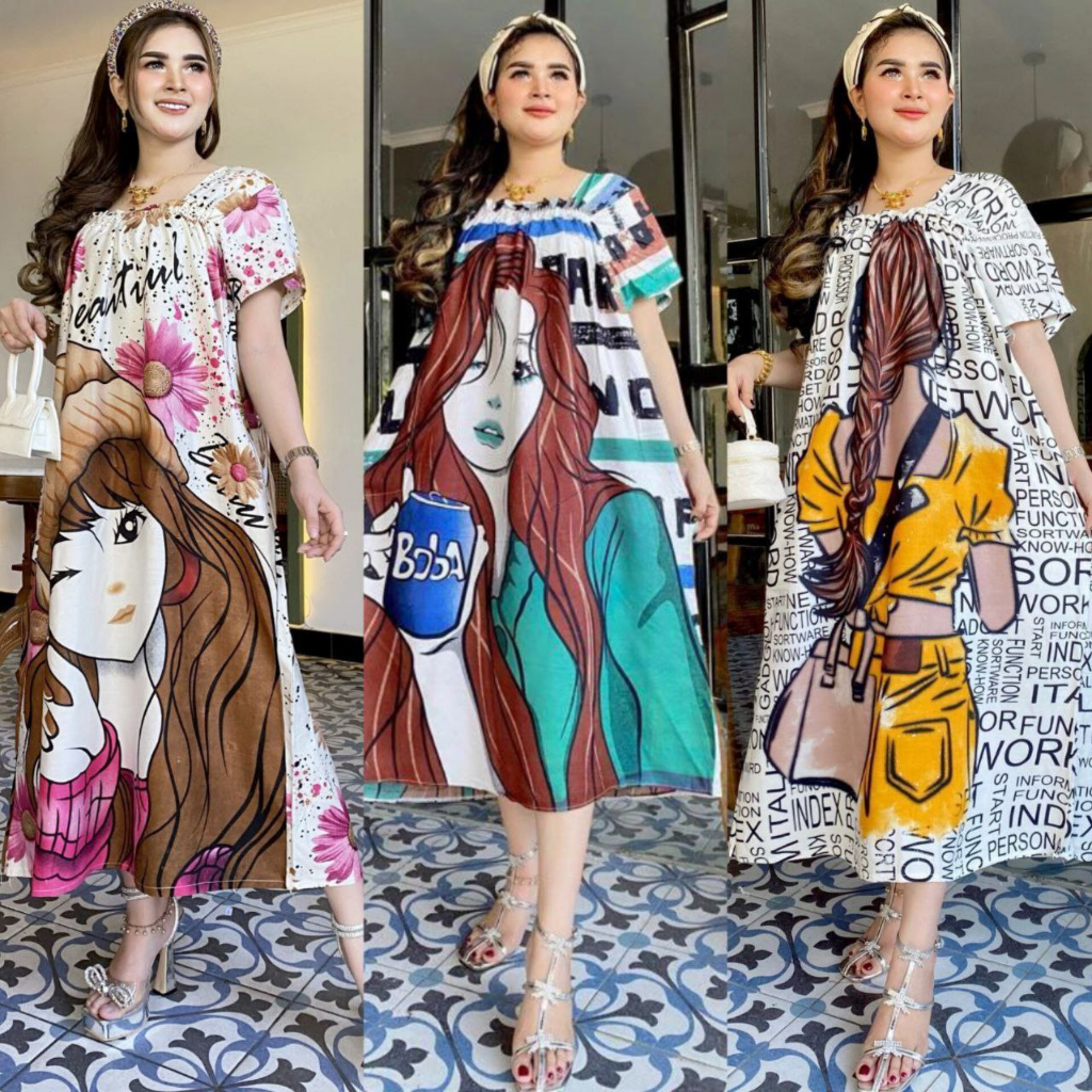 DASTER FUJI SHOFIA BEAUTY PREMIUM DRESS HOME LENGAN PENDEK DAILY FASHION CANTIK IBU JUMBO KERAH DADA MELAR