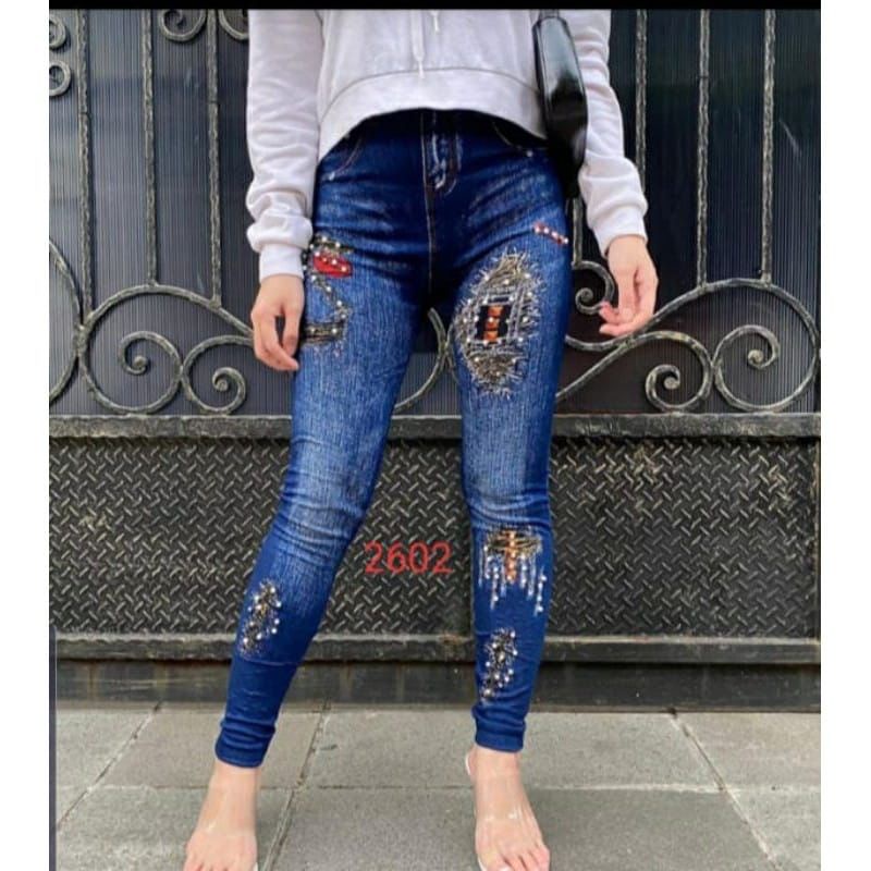 LEGGING JEANS MOTE IMPORT / LEGING DENIM MUTIARA / LEJING JEANS WANITA MOTIF BIBIR