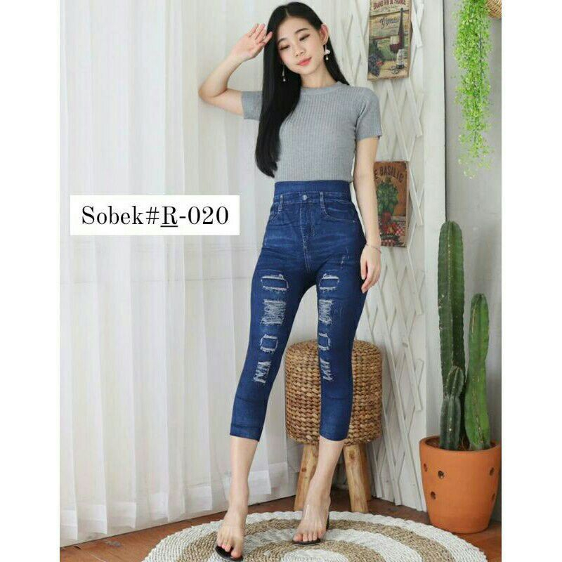 CELANA LEGGING 7PER8 JEANS MOTIF SOBEK / LEGING RIPPED JEANS 7/8 / LEJING IMPORT WANITA