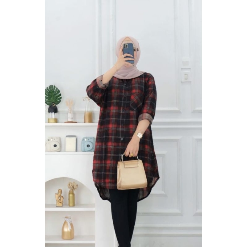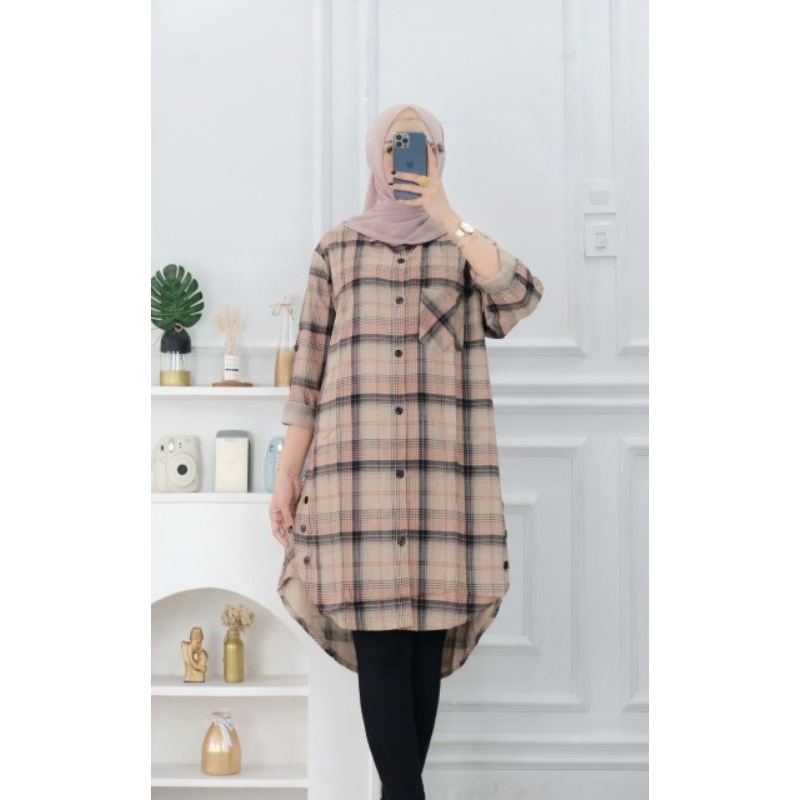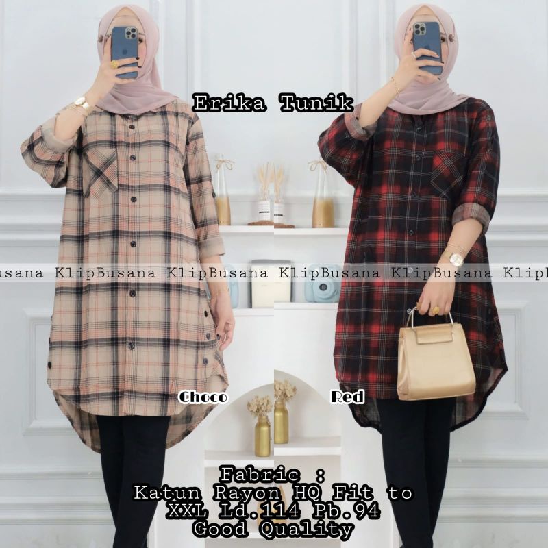 TUNIK JUMBO KEMEJA KATUN KERAH WANITA RAYON KOTAK BUSUI LD 114 - ERIKA TUNIK