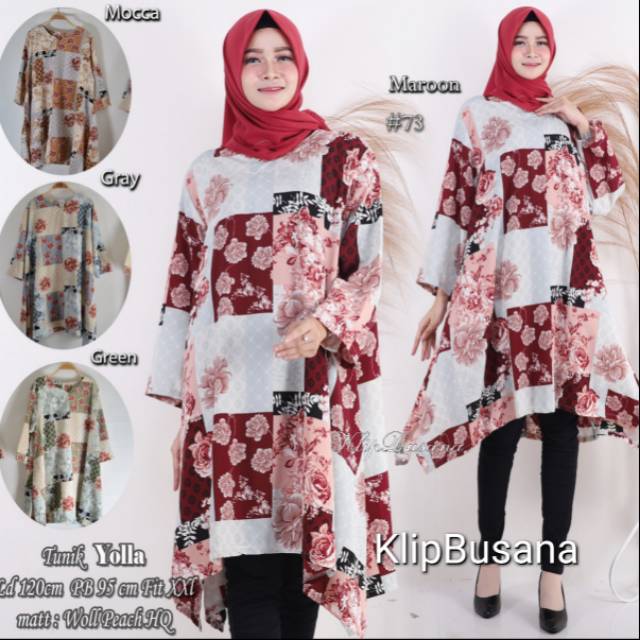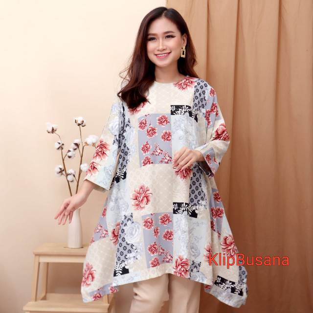 TUNIK WANITA TERBARU WAKA MOTIF BUNGA LD 100 110 120 ATASAN BIG SIZE WANITA L XL XXL XXXL - #073 YOLLA TUNIK