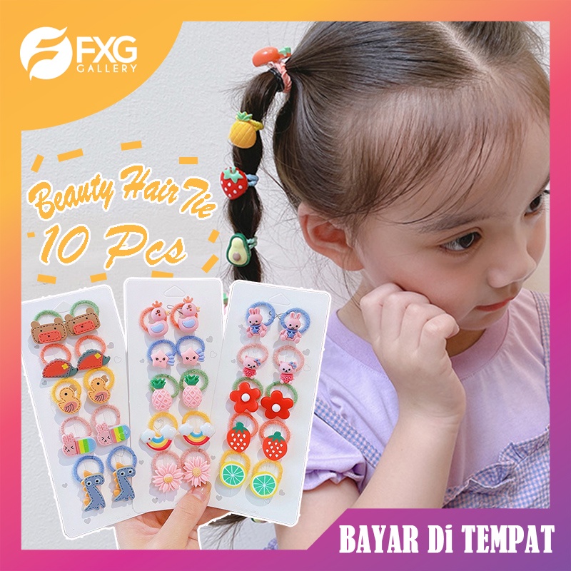 FXG - IKAT RAMBUT SET 10PCS KARAKTER ANAK PEREMPUAN LUCU KOREA HAIRTIE PITA KCR50