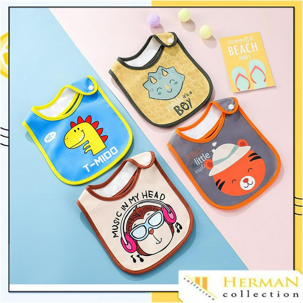 HC CELEMEK MAKAN BAYI MOTIF KARTUN SLABBER ANAK WATERPROOF APRON BABY TAHAN AIR KARAKTER BIB BLUDRU IMPORT