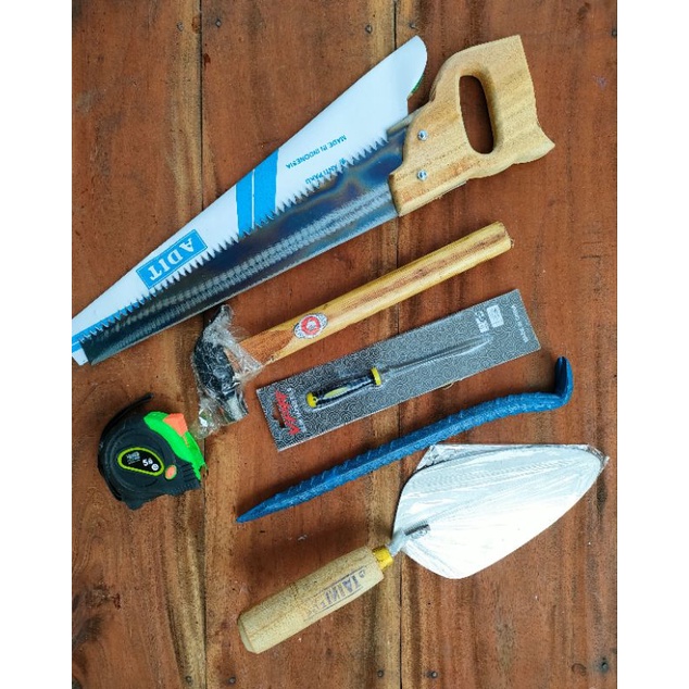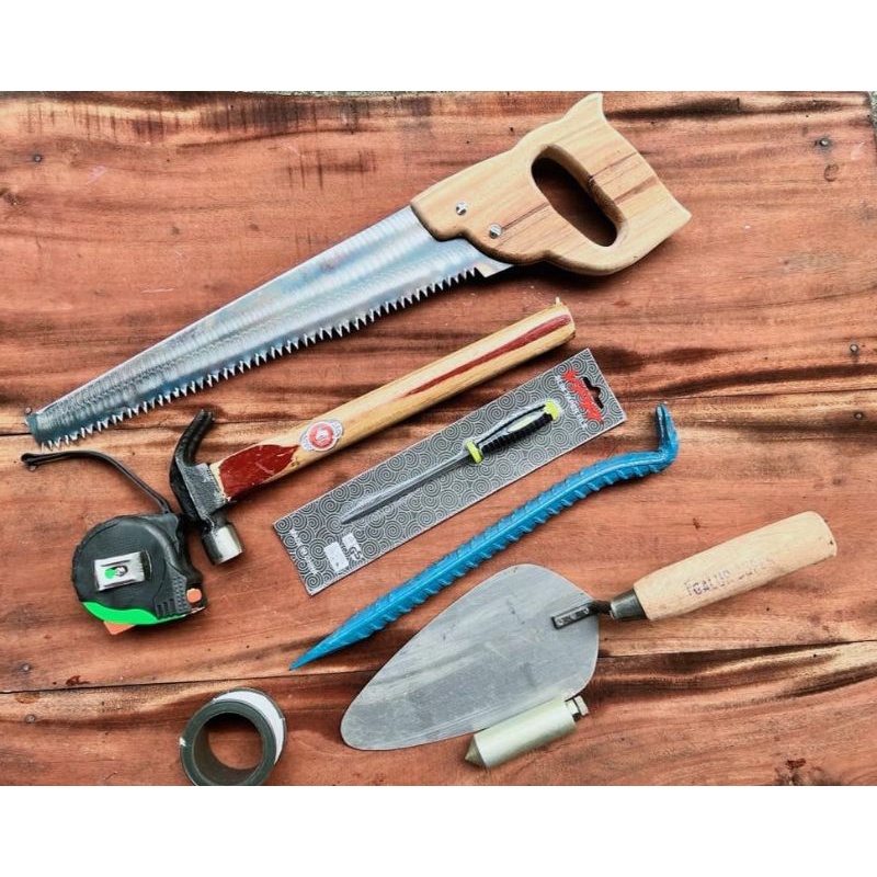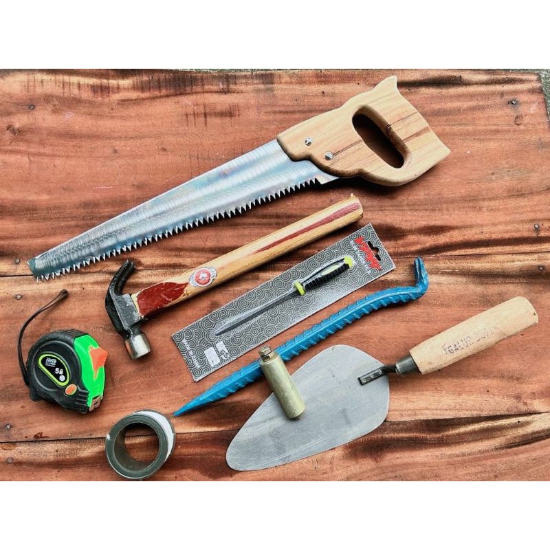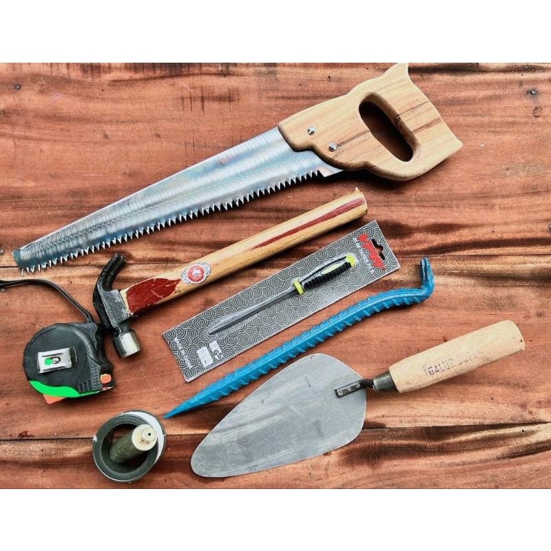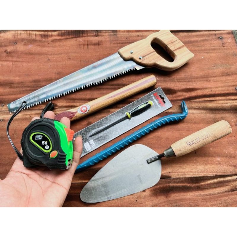 1 PAKET TUKANG LENGKAP ger gaji KAYU BAJA ASLI KIKIR ger gaji LINGGIS CUKIP PAKU CETOK SEMEN METERAN CAP VIPER